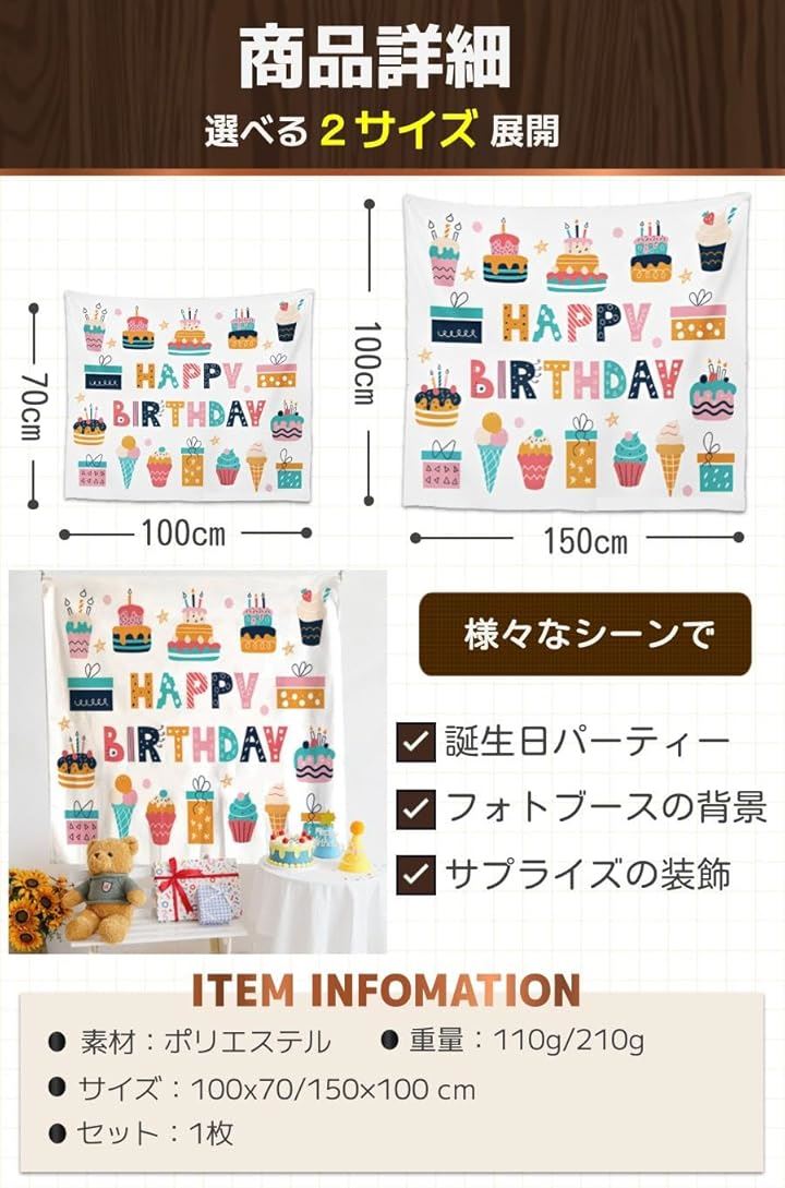 誕生日 飾り付け タペストリー パーティー バースデー 壁掛け birthday