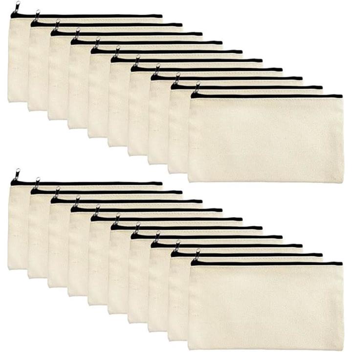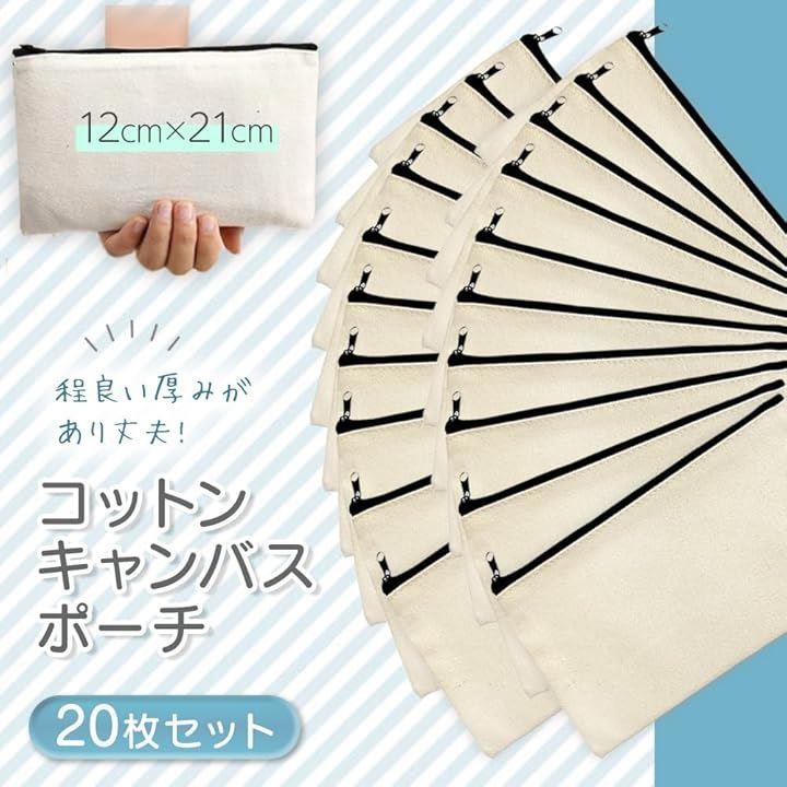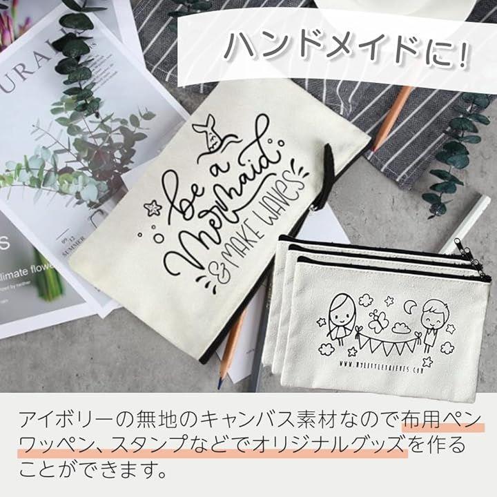 ポーチ 無地 キャンバス マルチケース ベージュ キャンバスポーチ ペイント プリント加工 ブラックファスナー S 20個