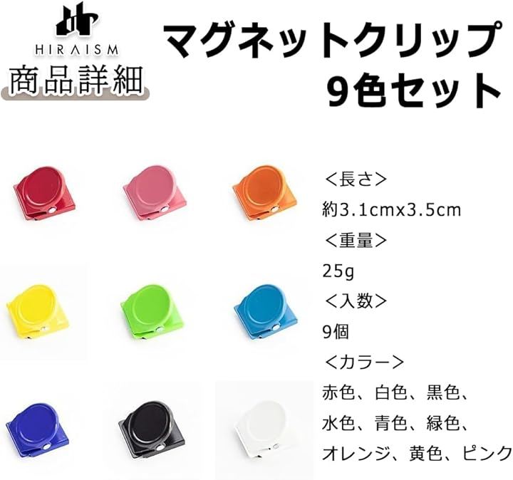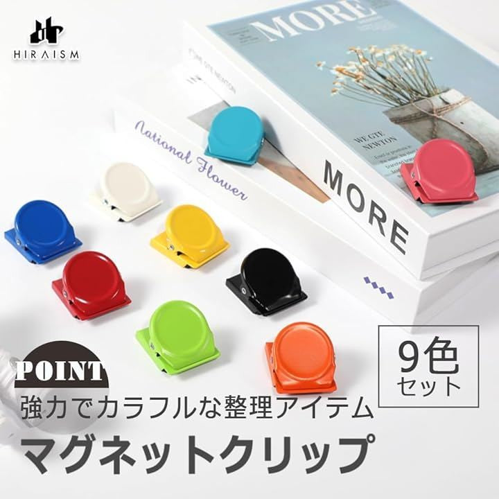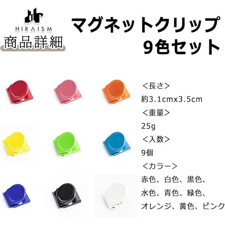 マグネットクリップ 冷蔵庫 磁石クリップ オフィス 学校用品 カラフル 9個セット