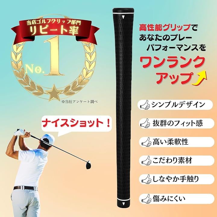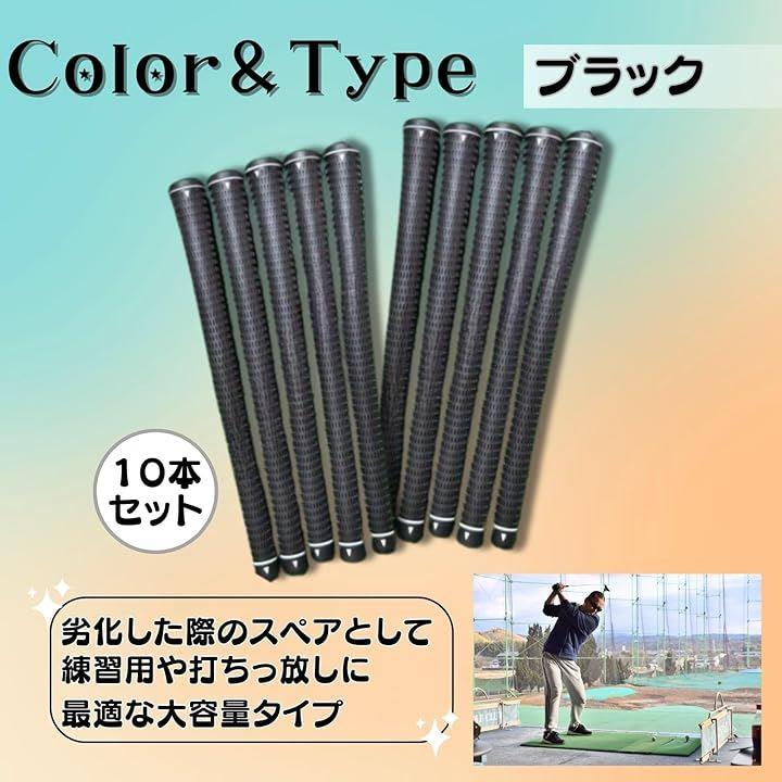 互換品 ゴルフグリップ 10本セット 黒 ブラック バックライン無し 練習用 試合用 交換用 クラブ ラバー ドライバー アイアン ウェッジ 標準 スタンダード 初心者 中級者 上級者向け 天然 ゴム素材