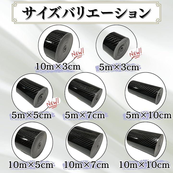 商品詳細「商品(本体)」10mx10cm 10mx7cm 10mx5cm 10mx3cm 5mx10cm 5mx7cm 5mx5cm 5mx3cm「重量」約264~712g「素材」PVC「カラー」5Dカーボンブラック