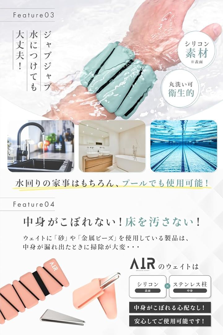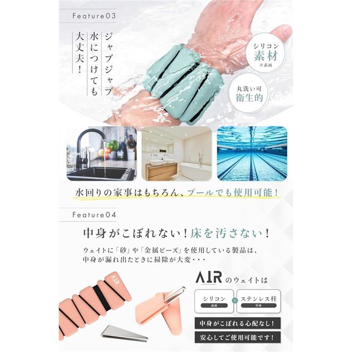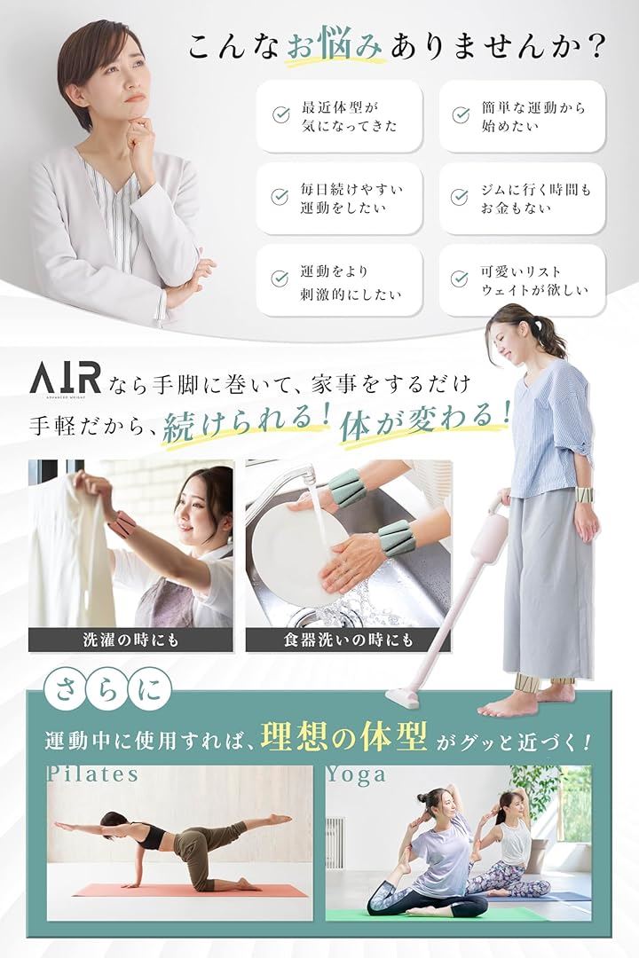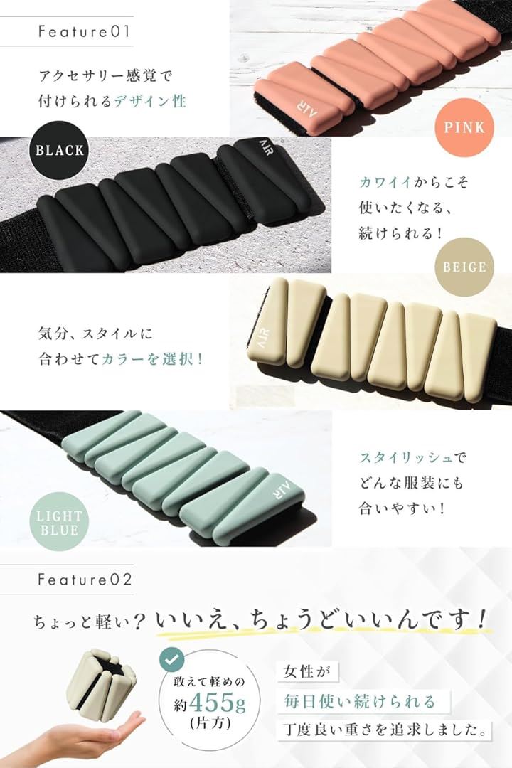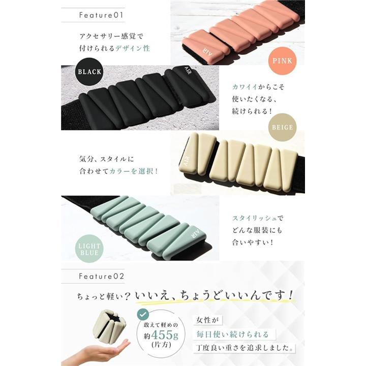 TENASGEAR AIR家事トレ革命・女性目線デザインリストウェイトアンクルウェイト 水中使用可 重量約910g ヨガ ピラティス ウォーキング