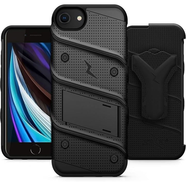 iPhone SE ケース カバー 第3世代 / 第2世代 iPhone8 iPhone7 対応 耐衝撃 衝撃吸収 米軍MIL規格 キックスタンド ベルトクリップ 機能付