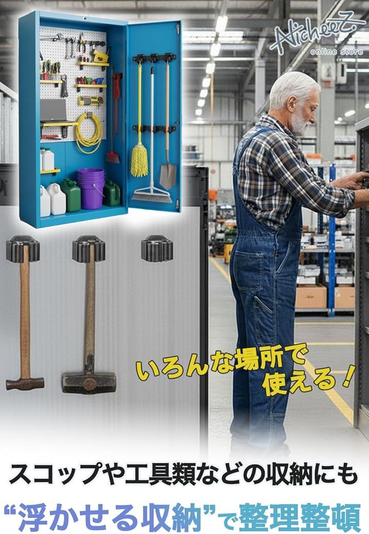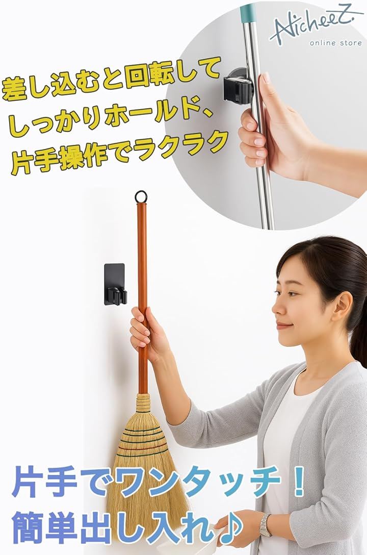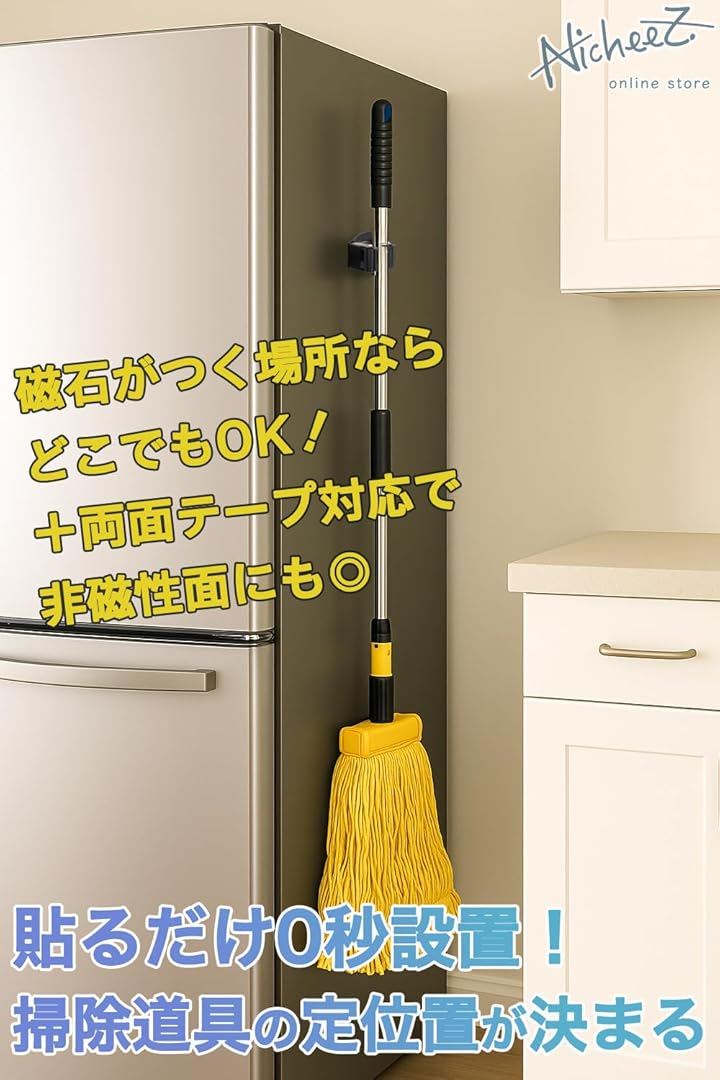 モップホルダー ほうきホルダー マグネット 強力 穴あけ不要 磁石 工具 傘 掃除道具 玄関 バス
