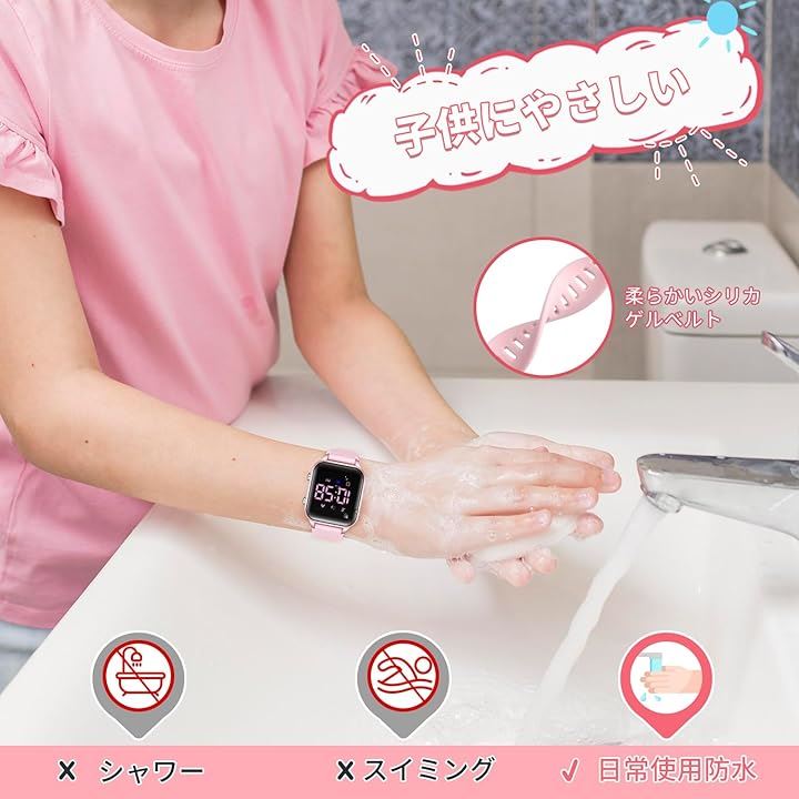 亜鉛合金製ケースと柔軟なシリコンバント、高解像度樹脂製ダイヤルと金属製裏蓋は、より耐久性があり、より快適で、子供たちの着用に適しています。