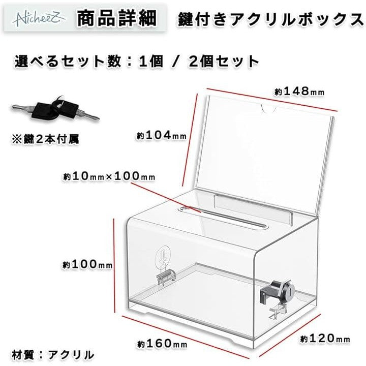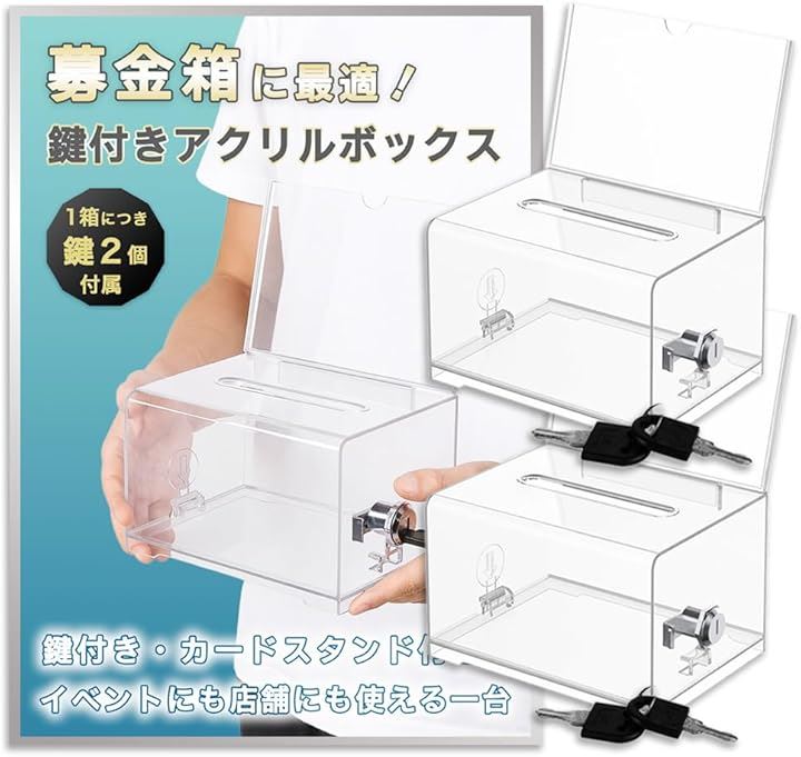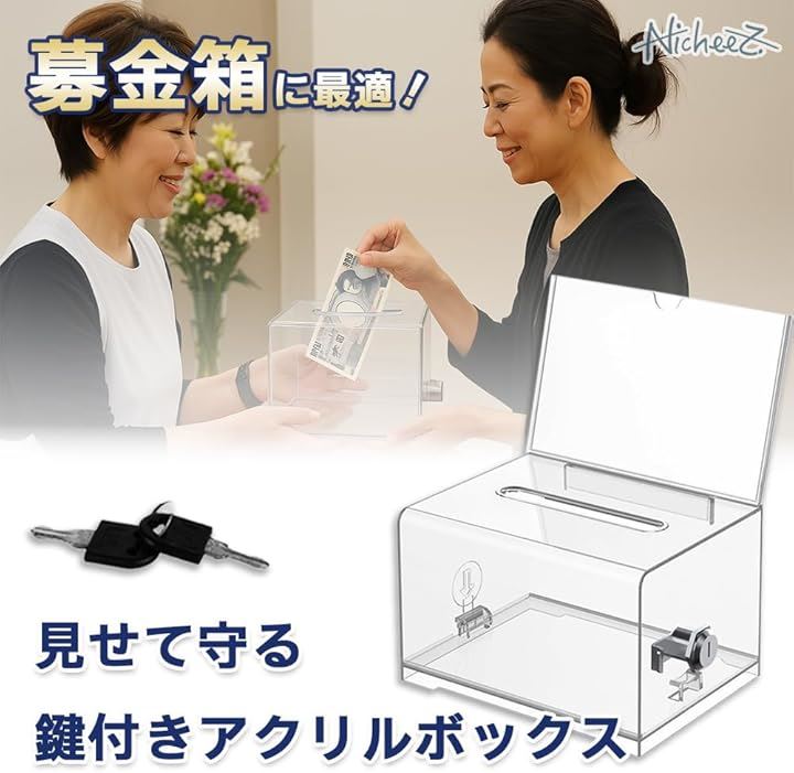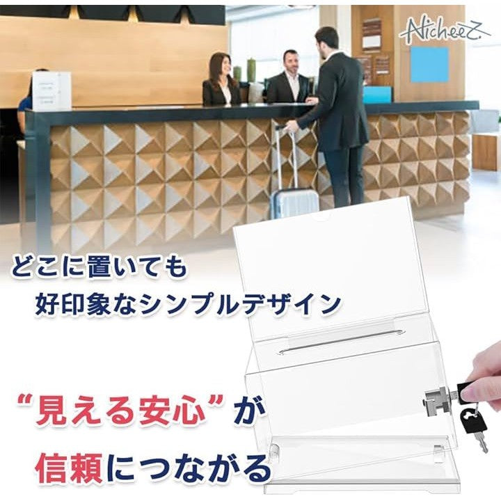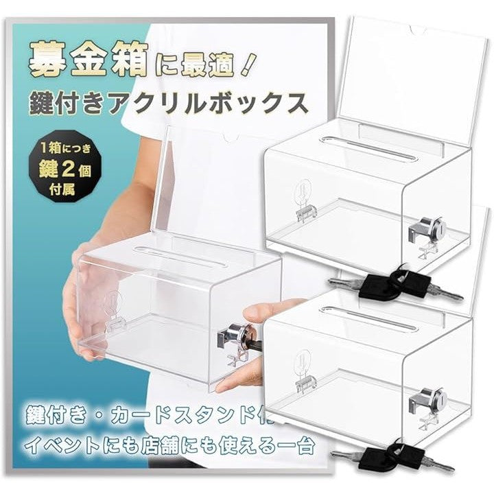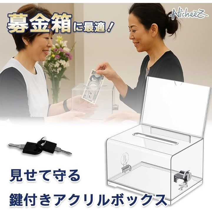 アクリル募金箱 鍵付き 透明 寄付箱 貯金箱 レジ横 フロント 投票