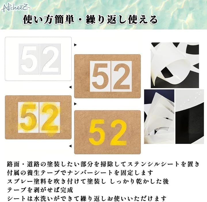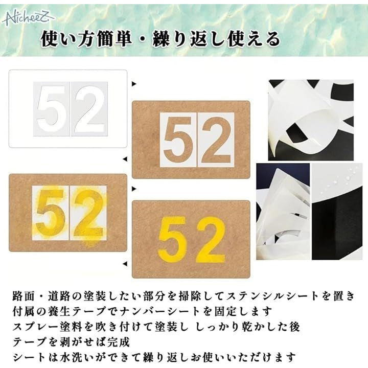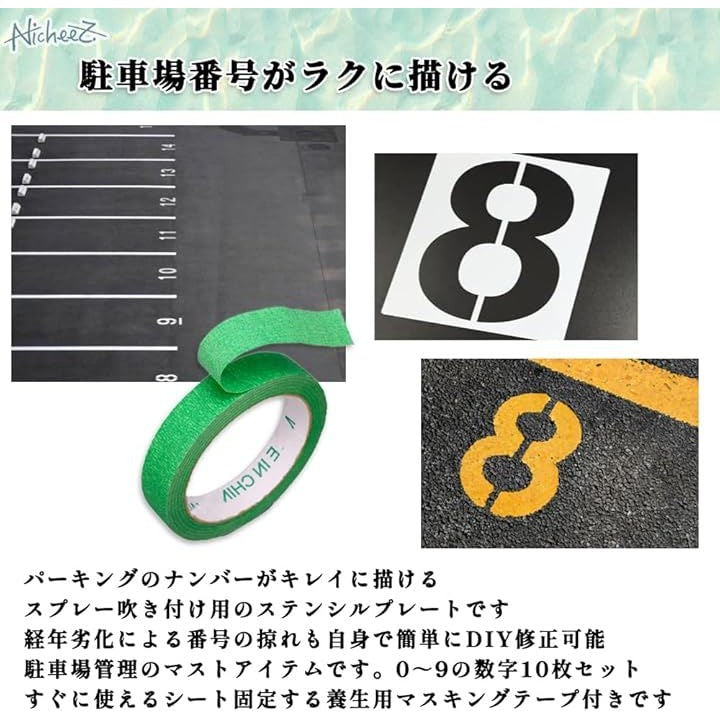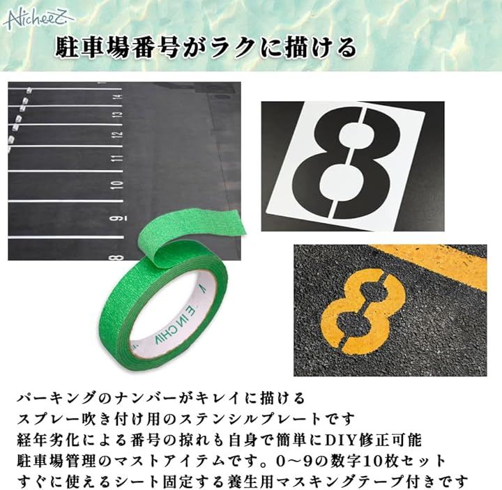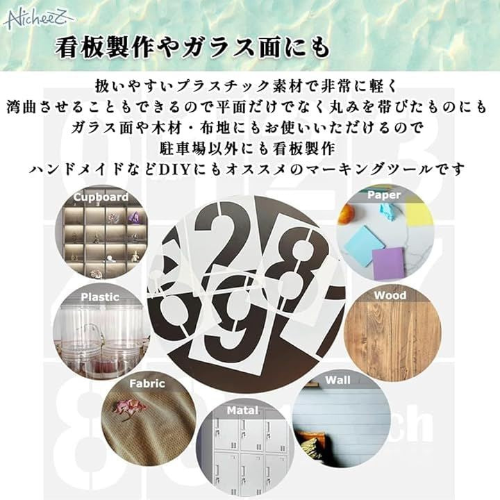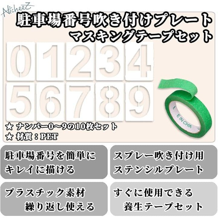 駐車場 番号 数字 プレート ステンシル シート プラスチック ナンバー スプレー 吹付 塗装 繰り返し使用 30cm マスキングテープ付