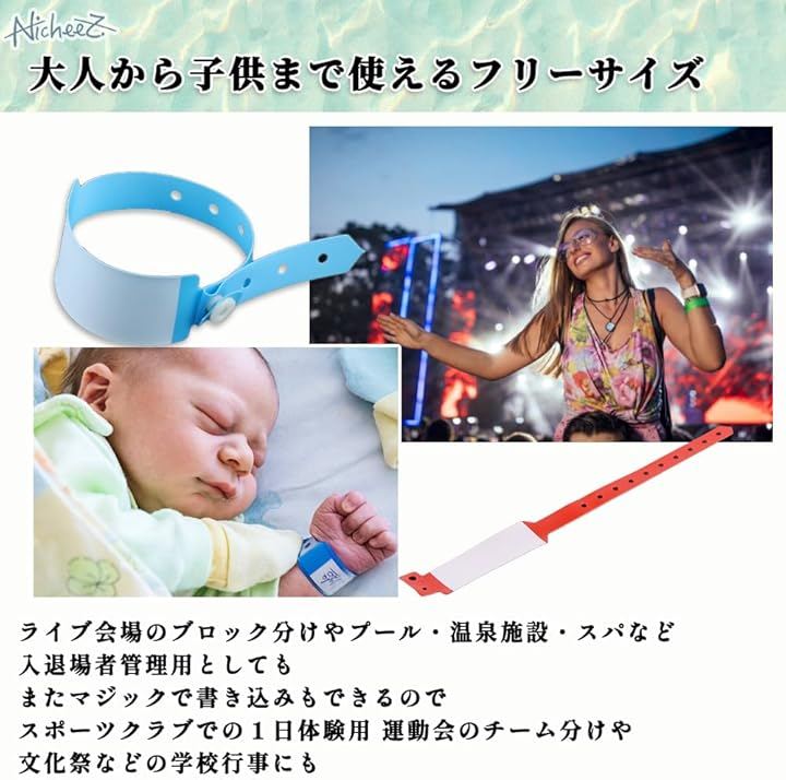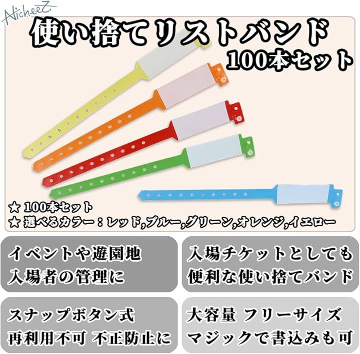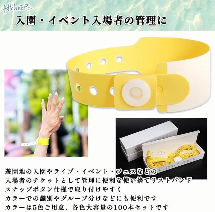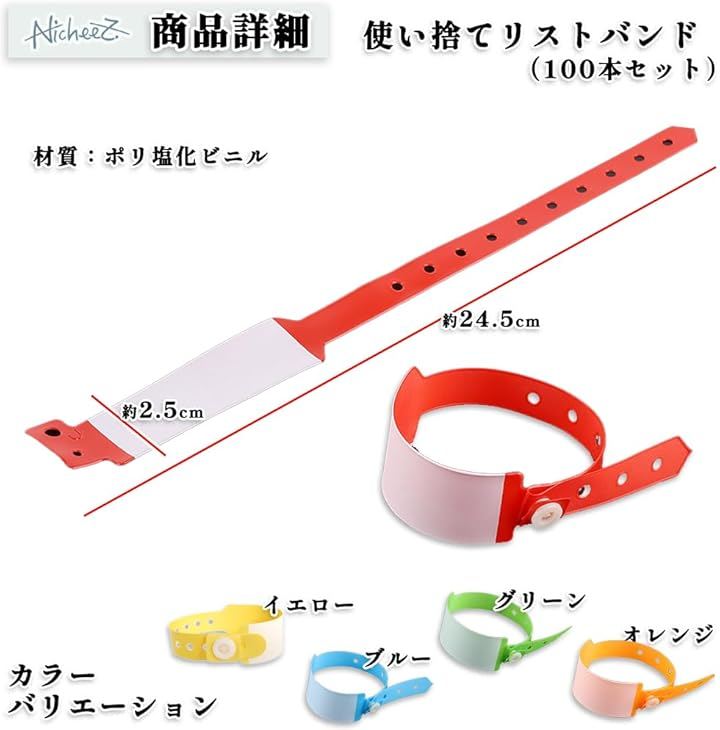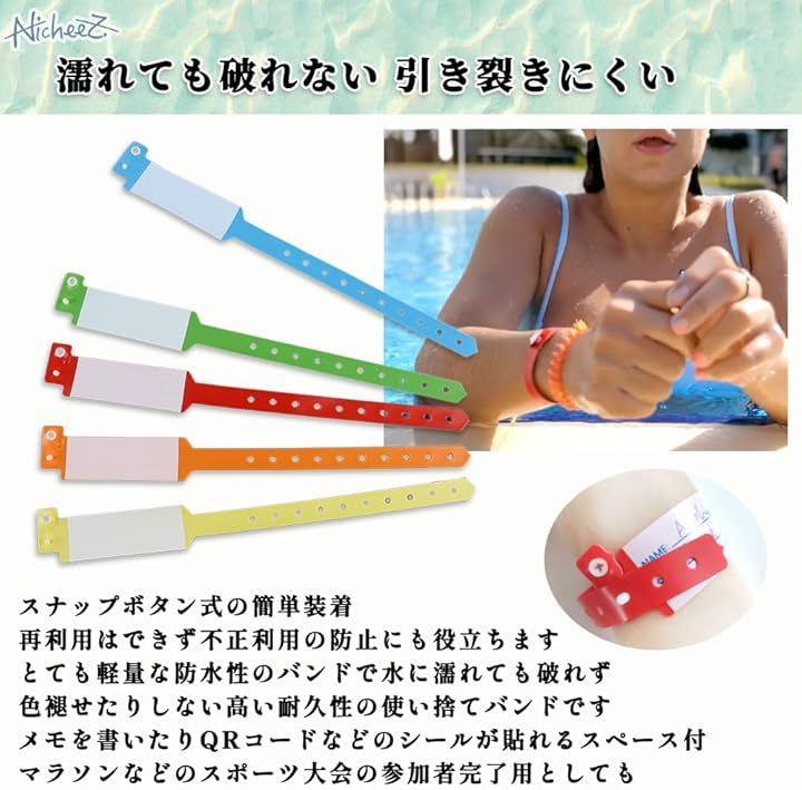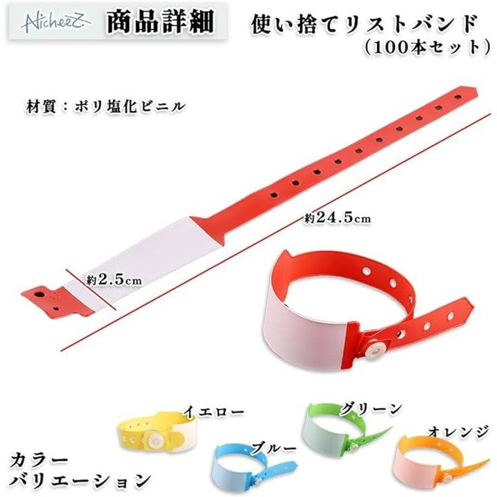 使い捨て リストバンド ビニール製 入場 人数 カウント 遊園地 ライブ イベント プール 管理 防水仕様 破れない ネームタグ 5カラー