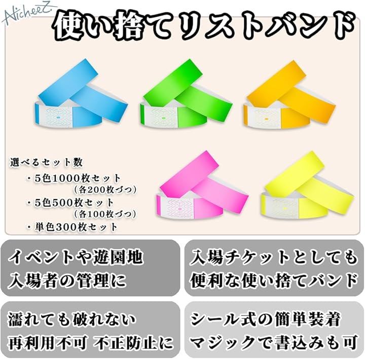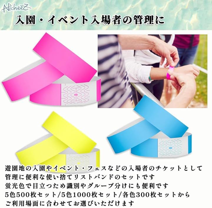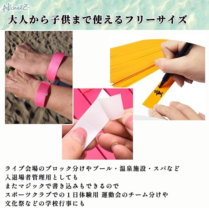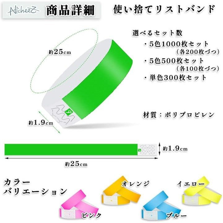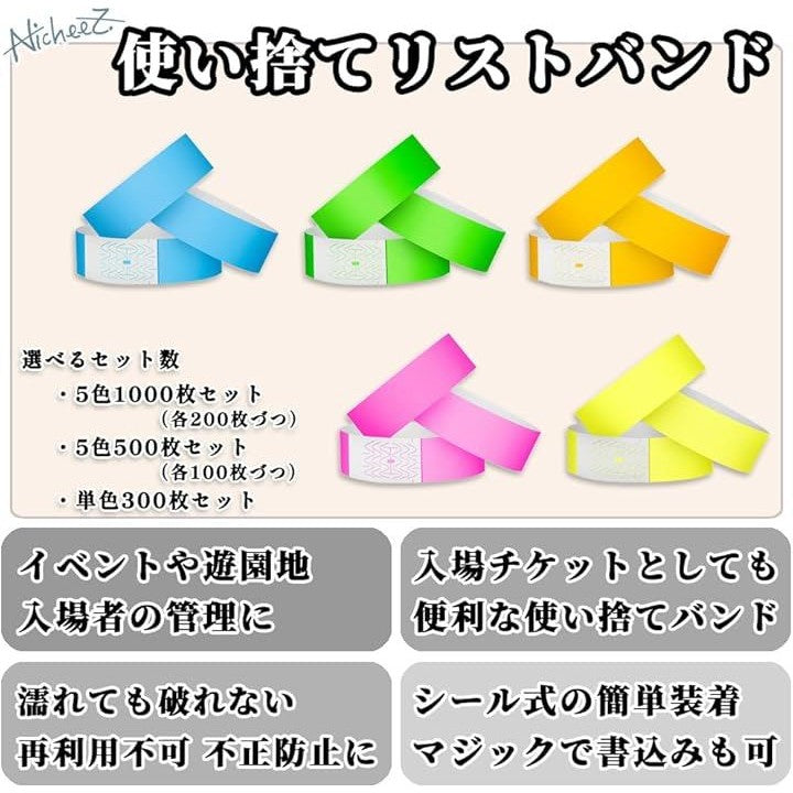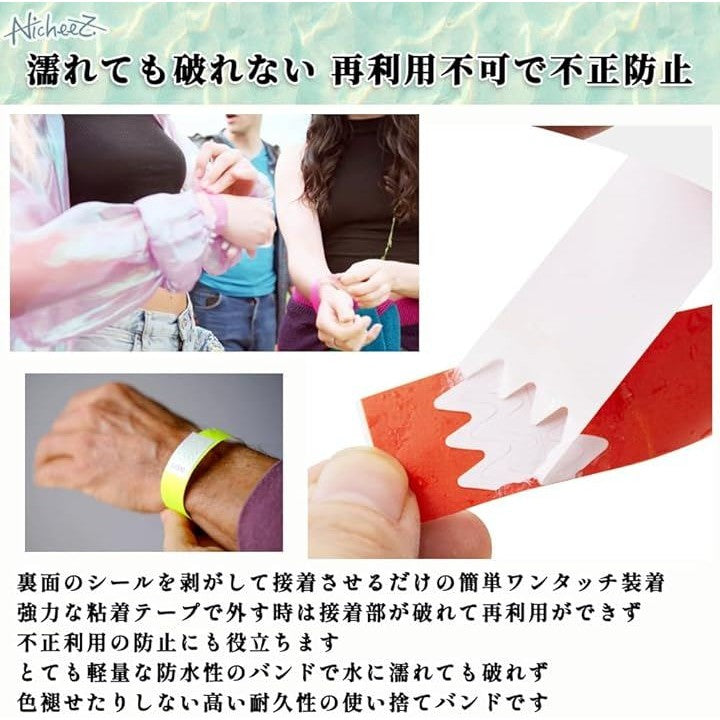 使い捨て リストバンド 入場 人数 カウント イベント 管理 防水仕様 蛍光 ワンタッチ 装着 耐引裂き