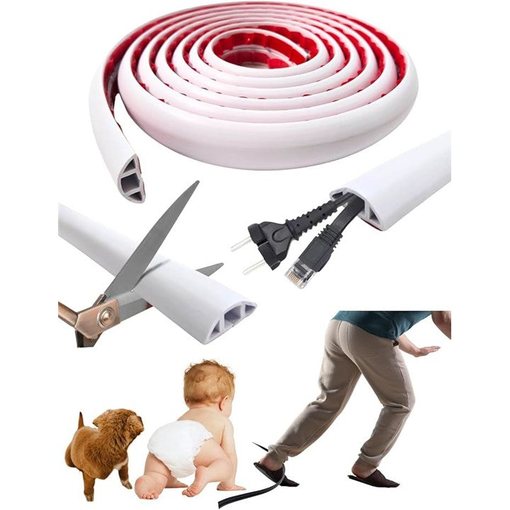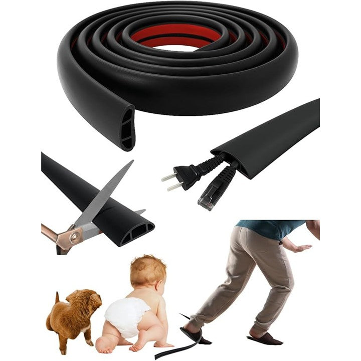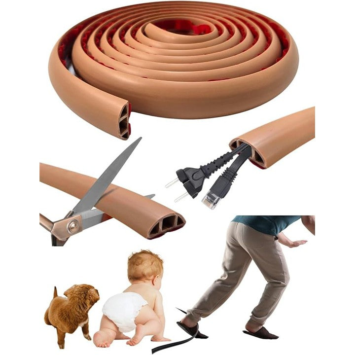 「高品質PVC素材使用|柔らかく安全な配線カバー」 やわらかいPVC素材を使用し、お子さまや高齢者、ペットがうっかり踏んでも痛くない安心設計。