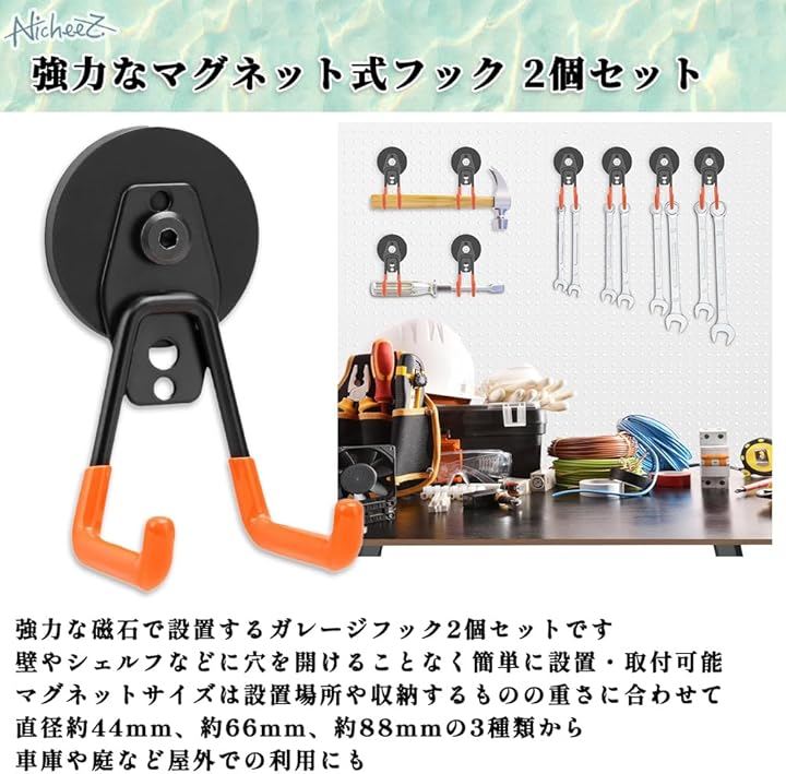 ガレージフック 強力 マグネット ドリル ガーデン ツール 収納 壁掛け 2個セット