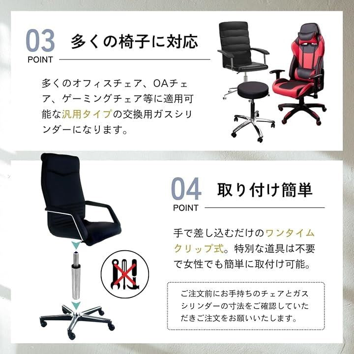 互換品ガスシリンダー 交換用 椅子 椅子を簡単アップグレード OAチェア ゲーミングチェア オフィスチェア 汎用タイプ