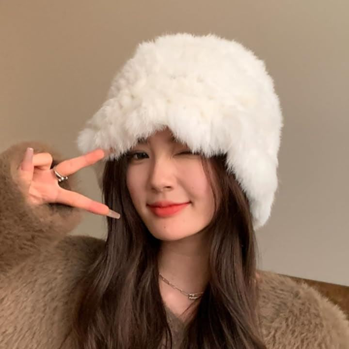 ラビット ファー バケット ハット レディース ふわふわ ニット 帽子 秋冬 防寒 あったか かわいい ウサギ プレゼント ゆったり キャスケット バケハ おしゃれ