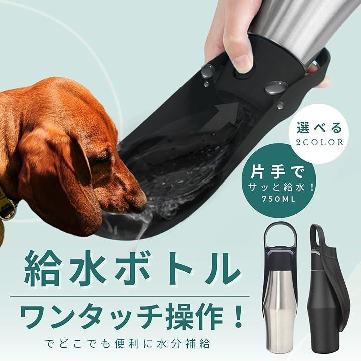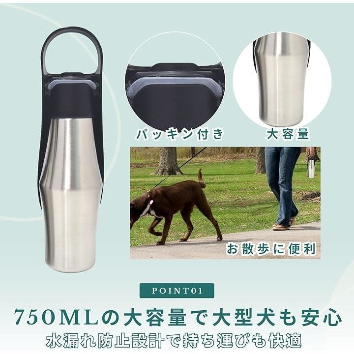 犬 水飲み器 散歩 給水ボトル 水筒 ウォーターボトル ペットウォーターボトル ステンレス 750ml