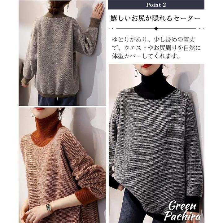 セーター レディース トップス ニット ハイネック プルオーバー 長袖 体型カバー ニットセーター 韓国ファッション 着痩せ オフィスカジュアル お尻が隠れるトップス 女性服 お洒落