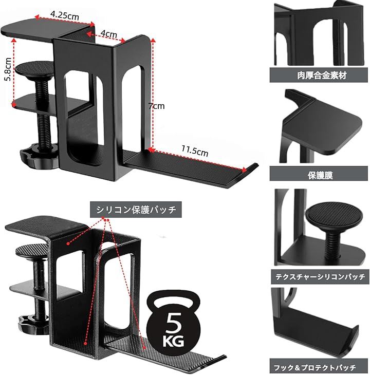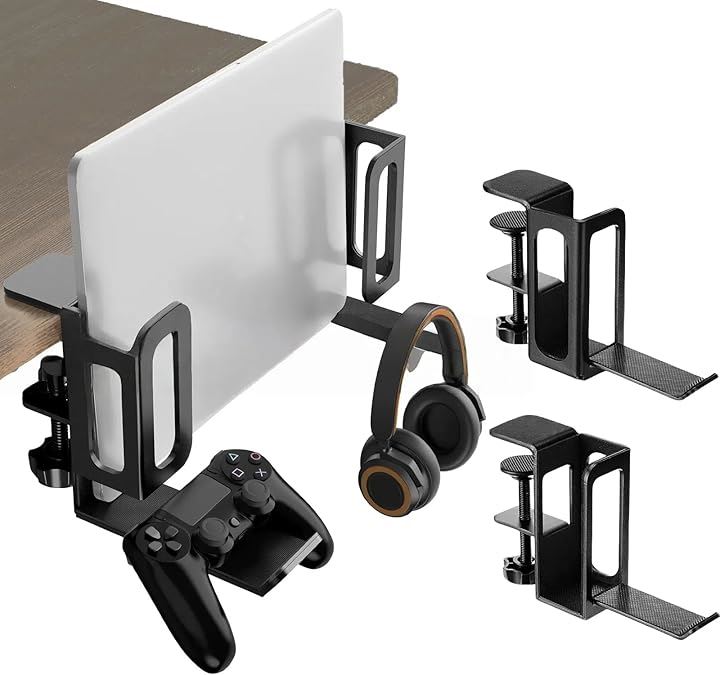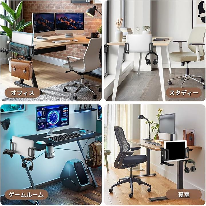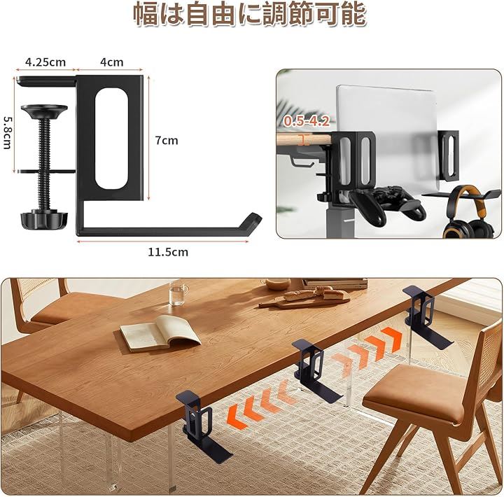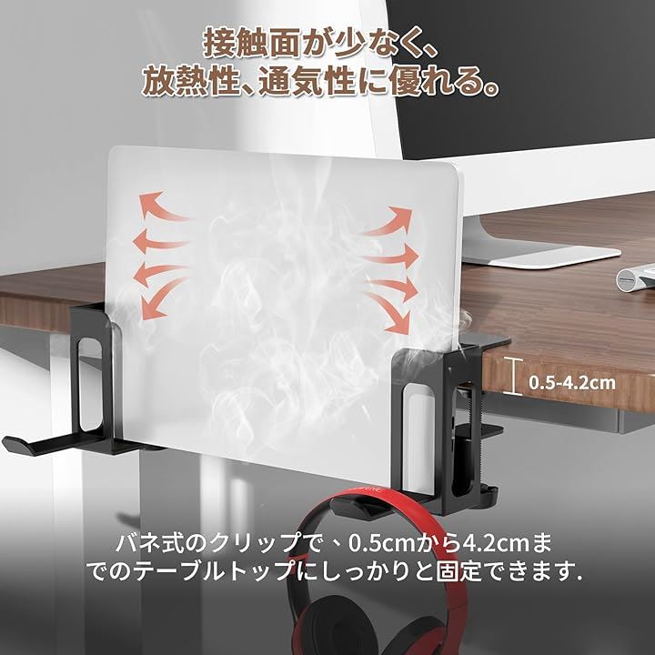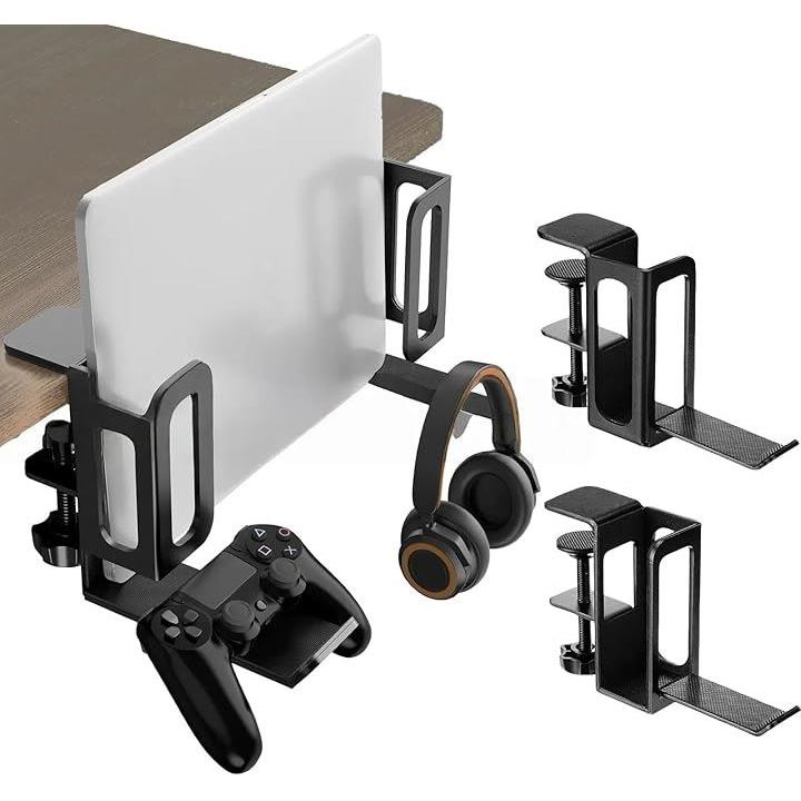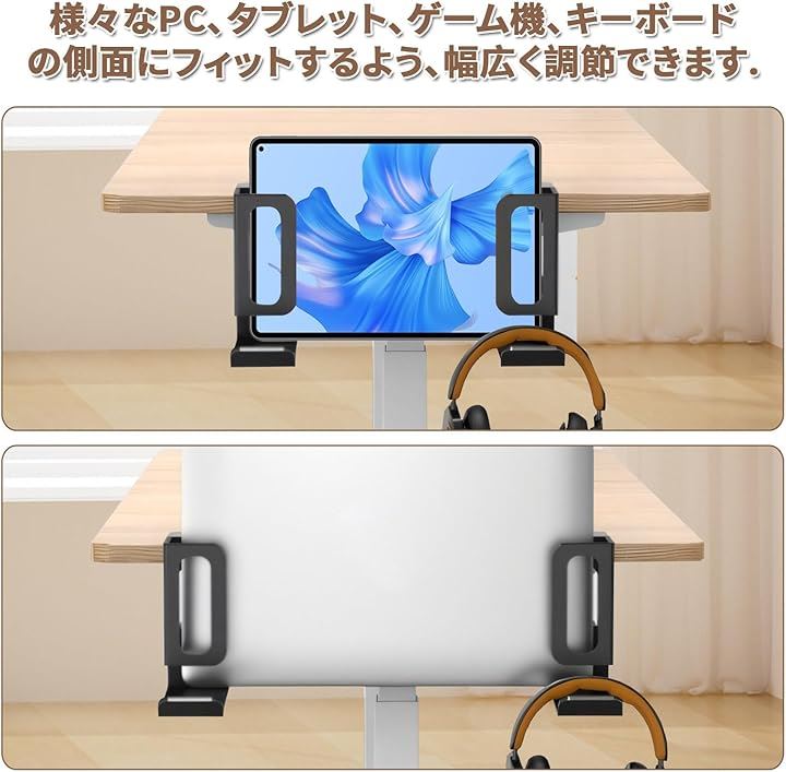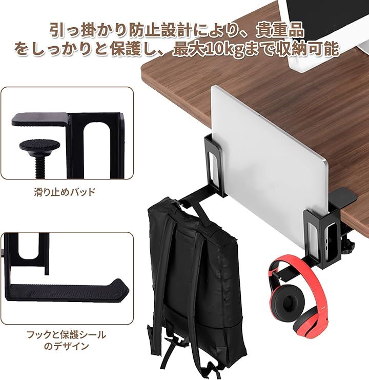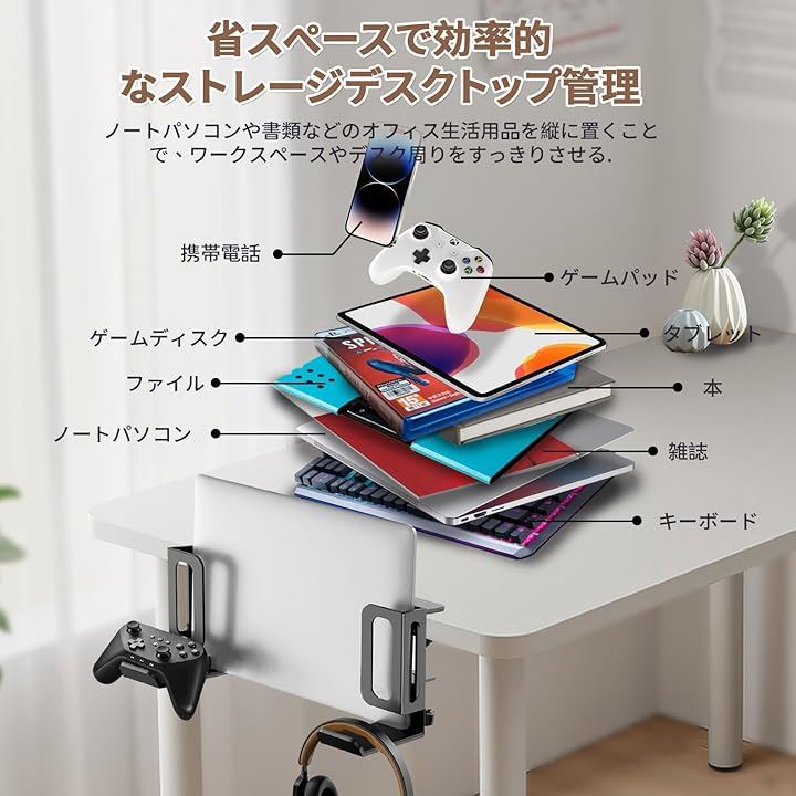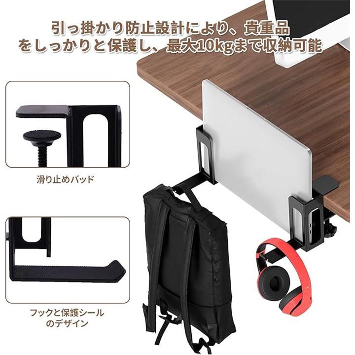 頑丈 & 多機能スタンドノートパソコンスタンド 机 収納 デスクサイド収納ラック ノートPCスタンド 縦置き 幅調整/放熱設計/多機能フック 滑り止め MacBook iPad Kindle対応 強力クランプ固定