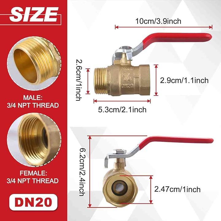 互換品 真鍮ボールバルブ 3/4 メス>オスねじ パイプ継手 真鍮ボールバルブシャットオフスイッチ 真鍮ボールバルブ遮断スイッチ ロックボールバルブ ドレンコック 水道管バルブ エアーラインコック エアラインソケット エアバルブ エアコンプレッサー用