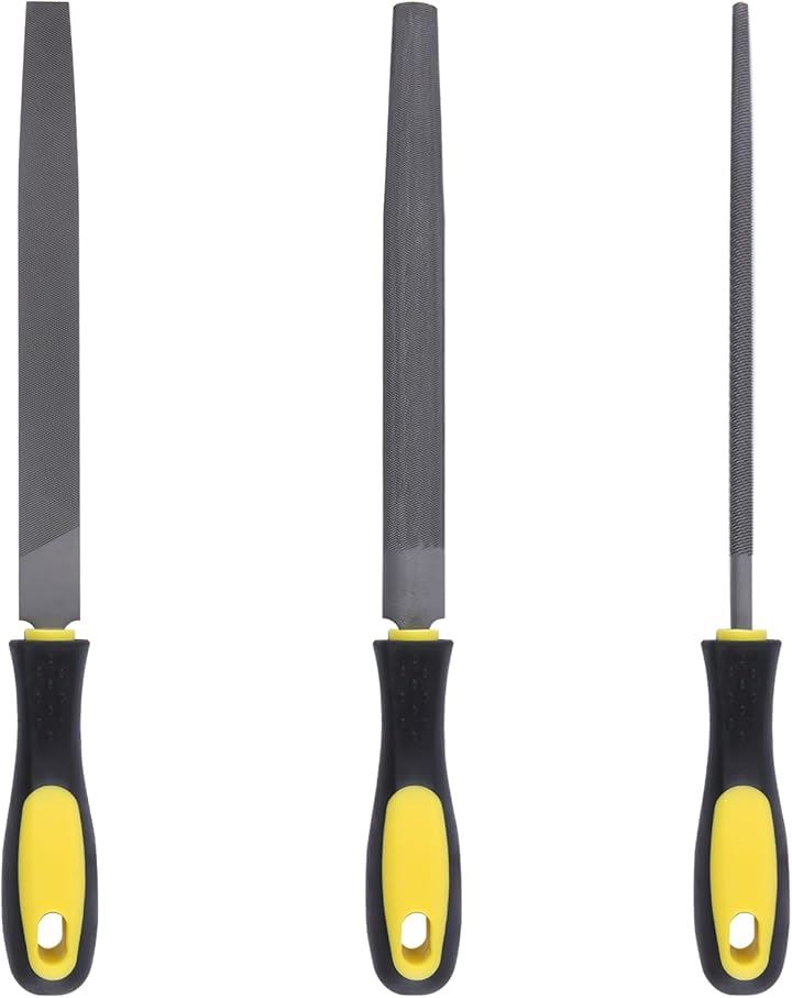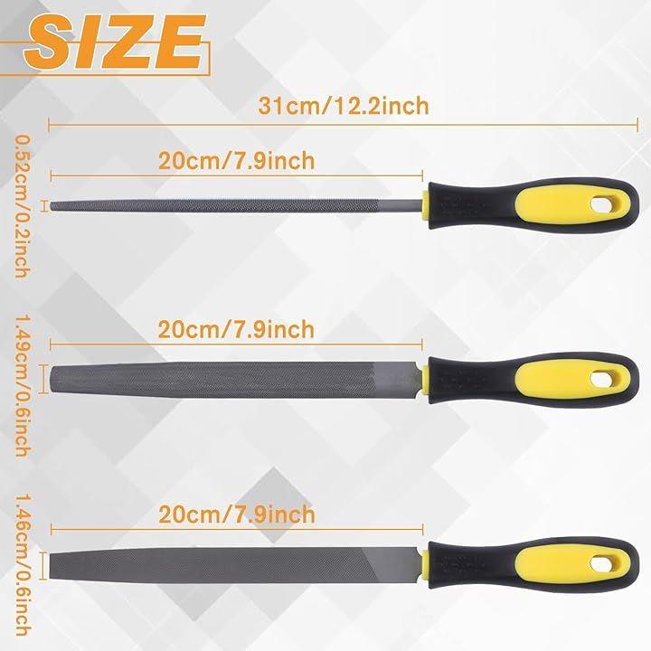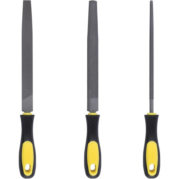 互換品 金属ヤスリ セット 3本組 鉄工ヤスリ 平ヤスリ 丸棒 半丸 中目 200mm T12炭素鋼 滑り止めグリップ付 金属手やすり工具 メタルハンドヤスリ工具 棒やすり 金属やすり 鑢 細工用ヤスリ