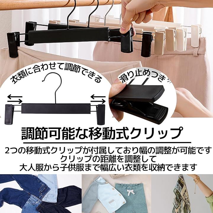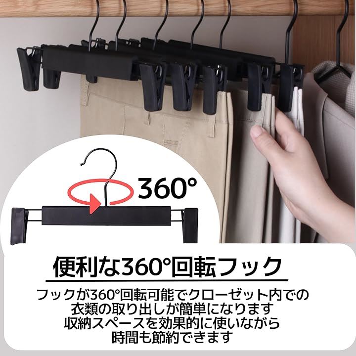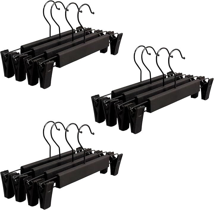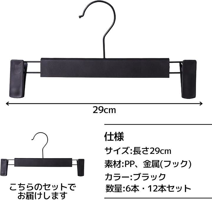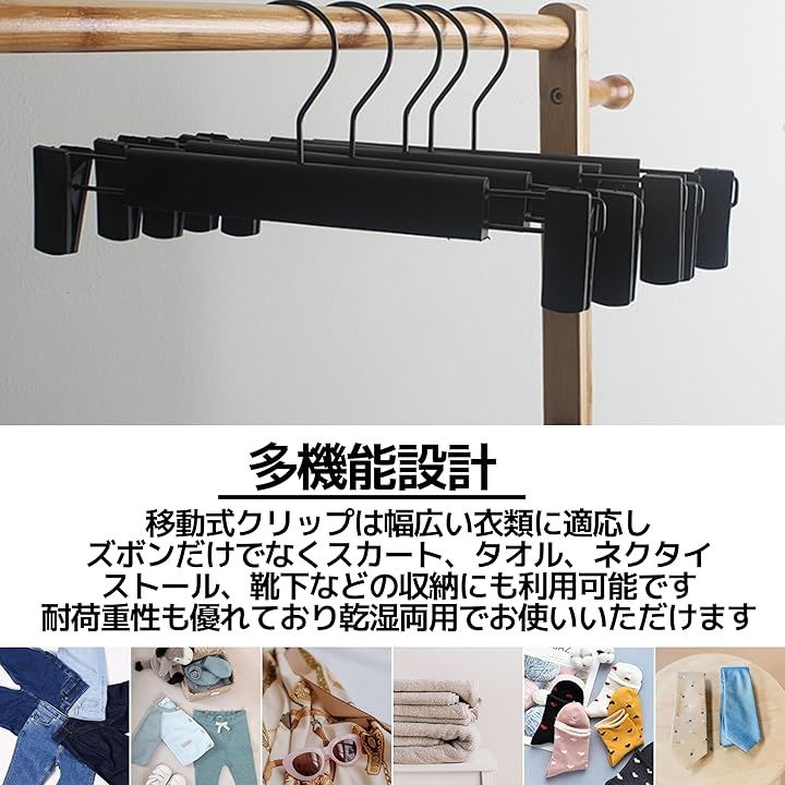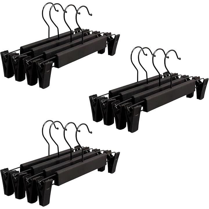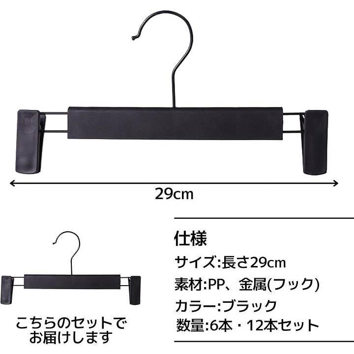 ズボンハンガー パンツハンガー クリップ付き スラックス スカート 衣類収納 乾湿両用 12本組 黒