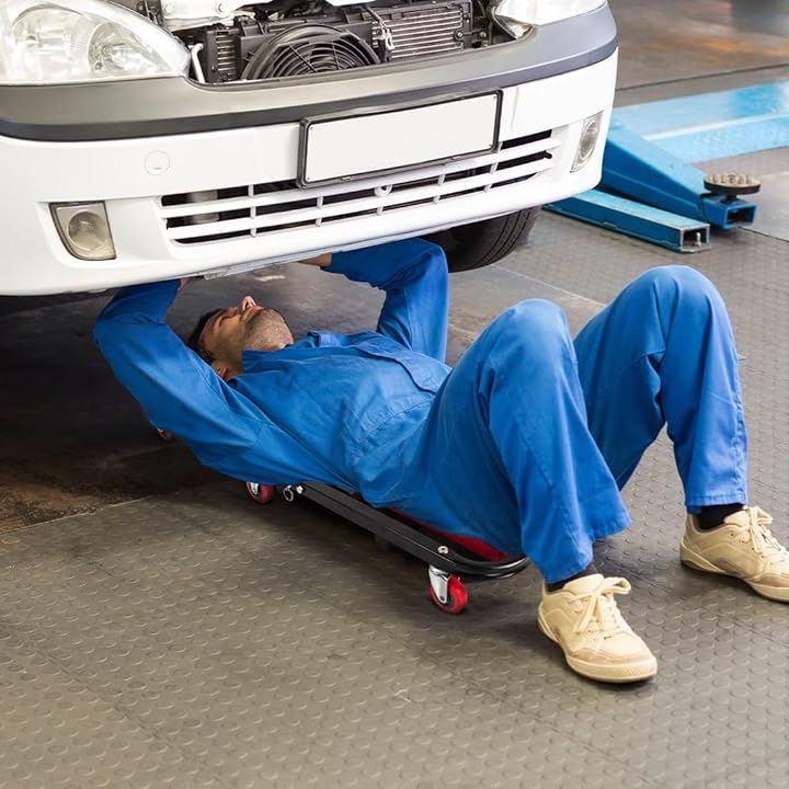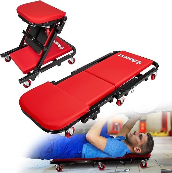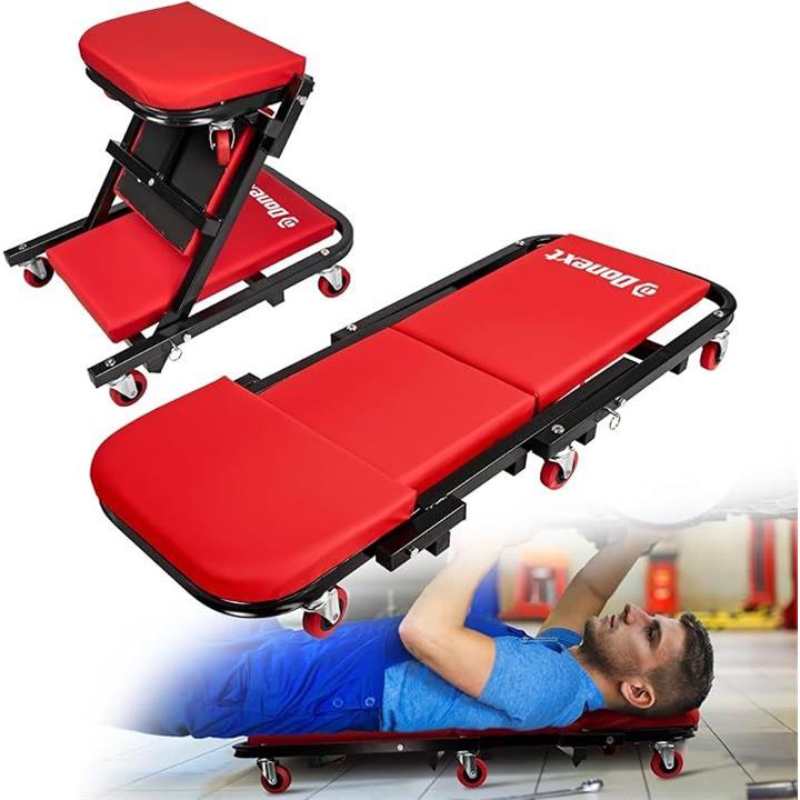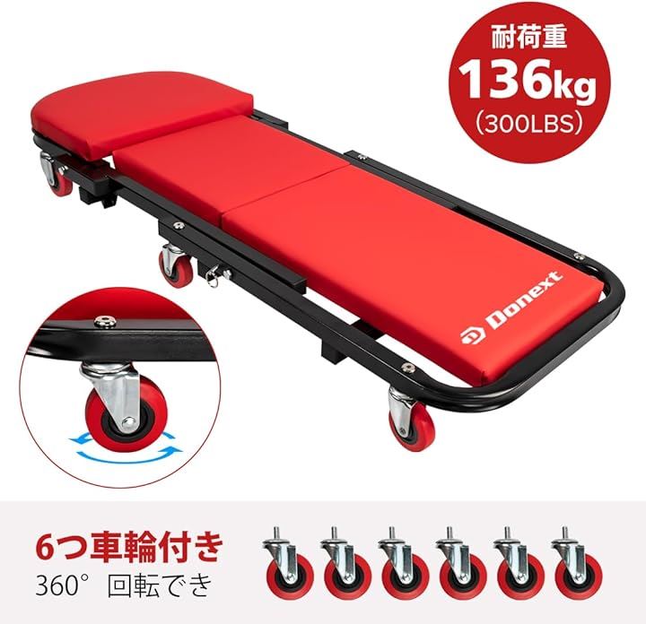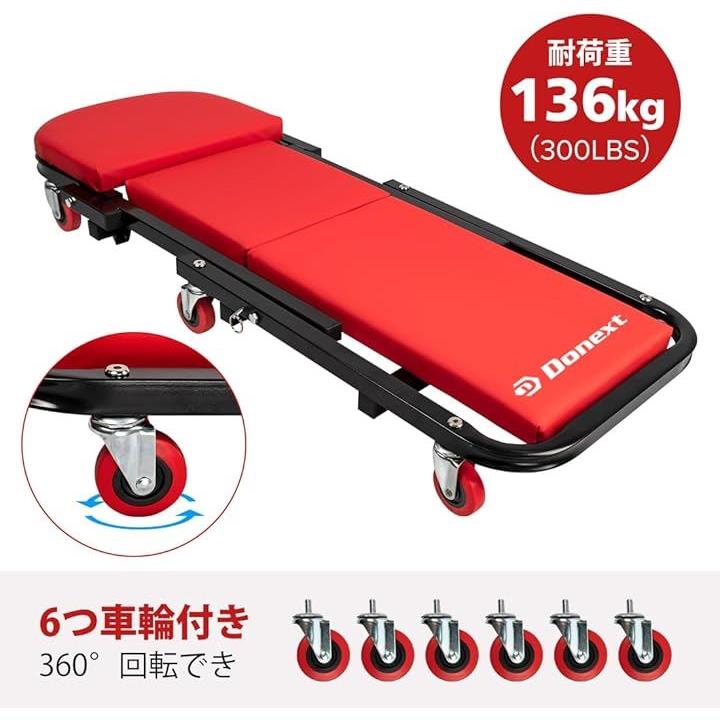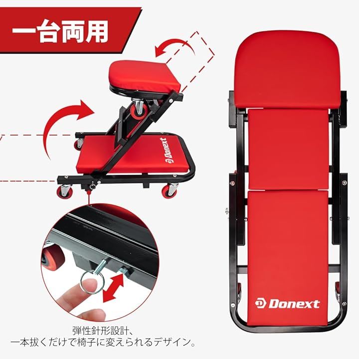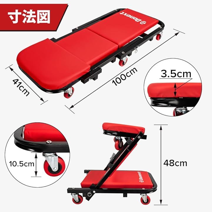寝板 クリーパー 作業椅子 両用 低床 キャスター付き 車整備 折りたたみ レッド 日本語説明書付き
