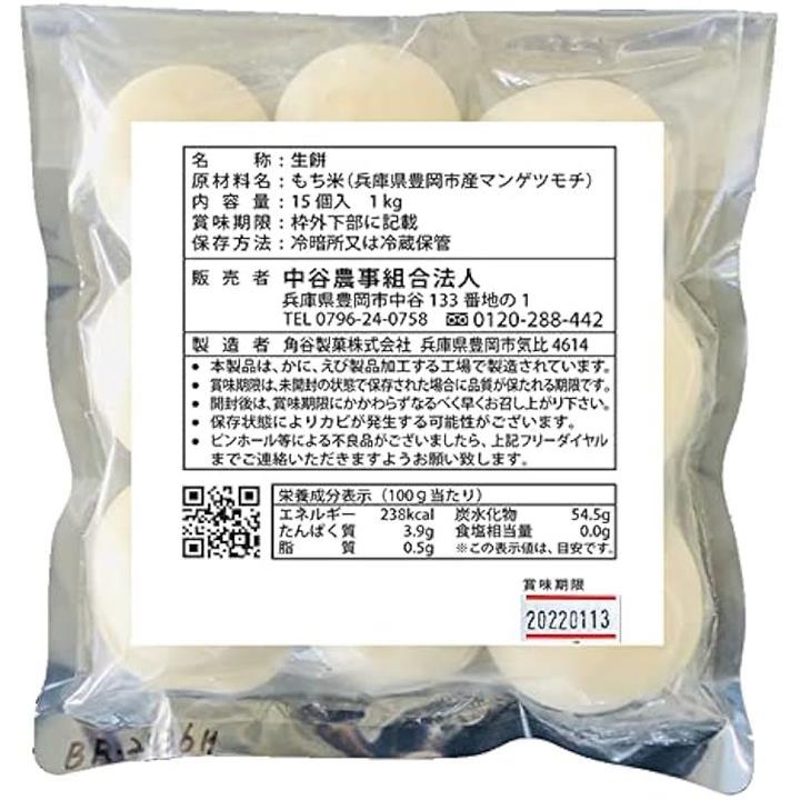 なかのたにのおもち マンゲツモチ使用 丸餅 つきたて 15個入りx1袋 1kg お餅 正月 防腐剤不使用 どうづき製法