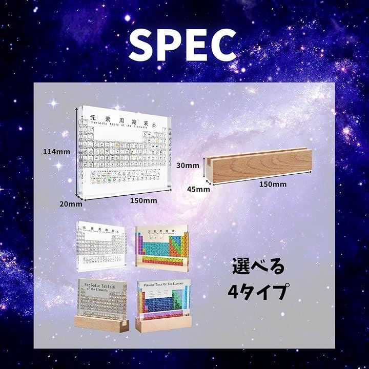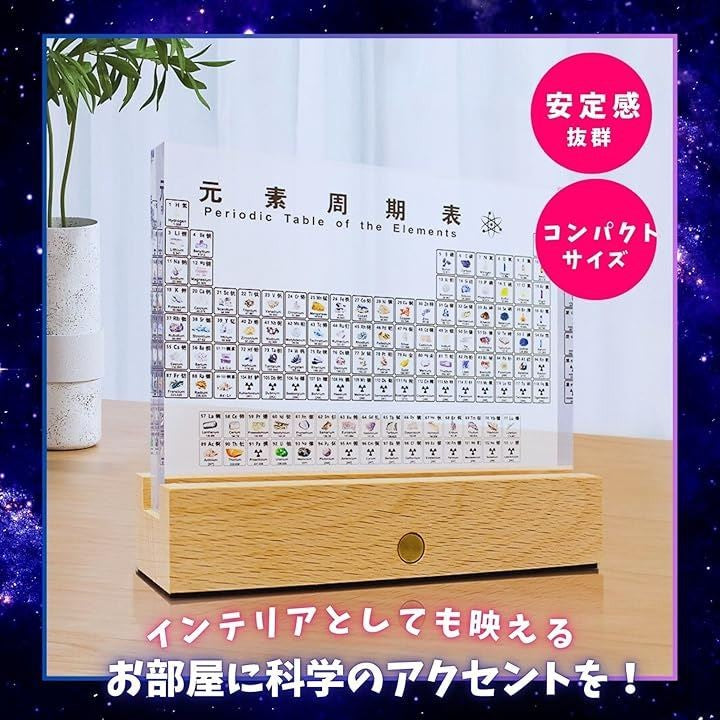 元素周期表 元素図鑑 元素標本 アクリル 卓上 学習ツール 学用品 インテリア 勉強 知育 デスク 机 プレゼント