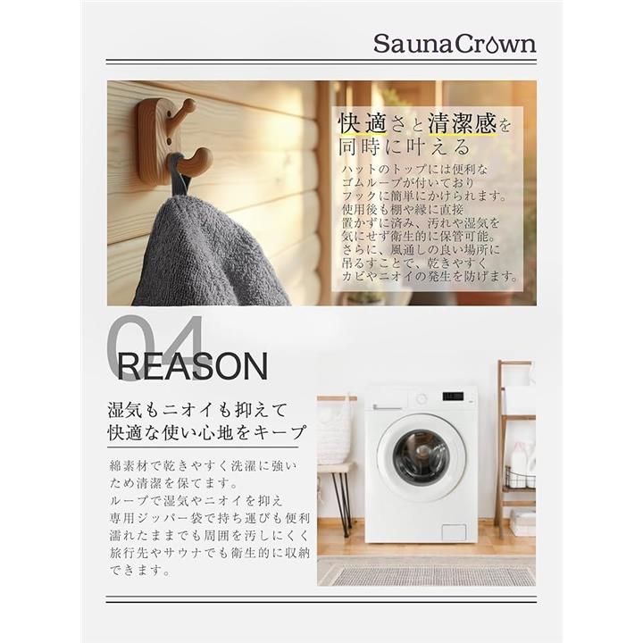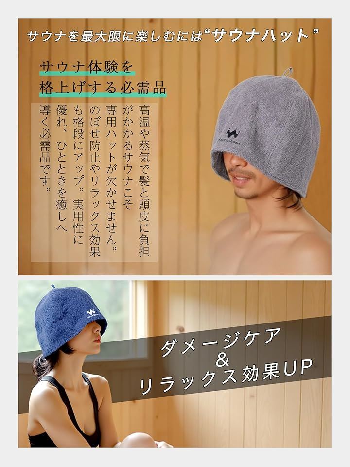 SaunaCrown サウナハット 完全没入ハット顔まで覆える メンズ 大きめ レディース 兼用 タオル 深め 二重構造 サウナグッズ 洗濯可