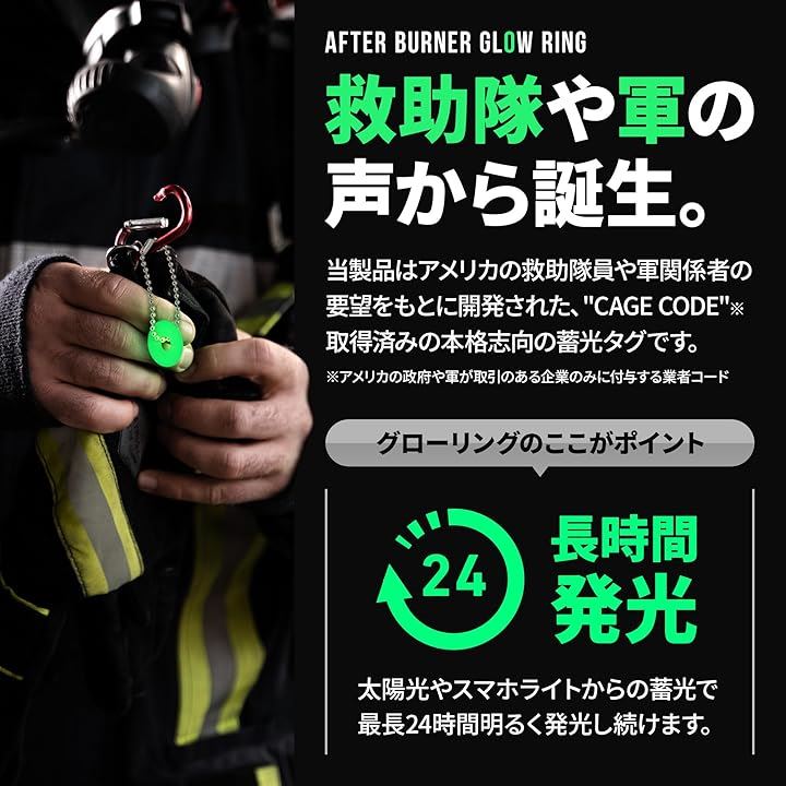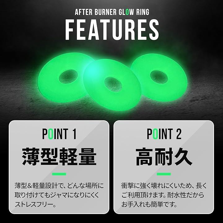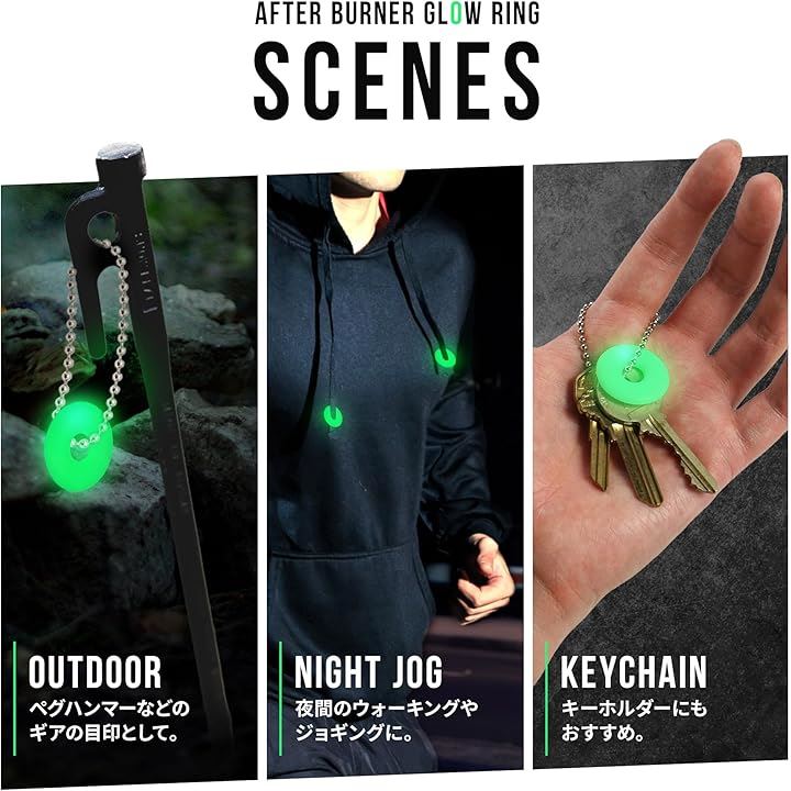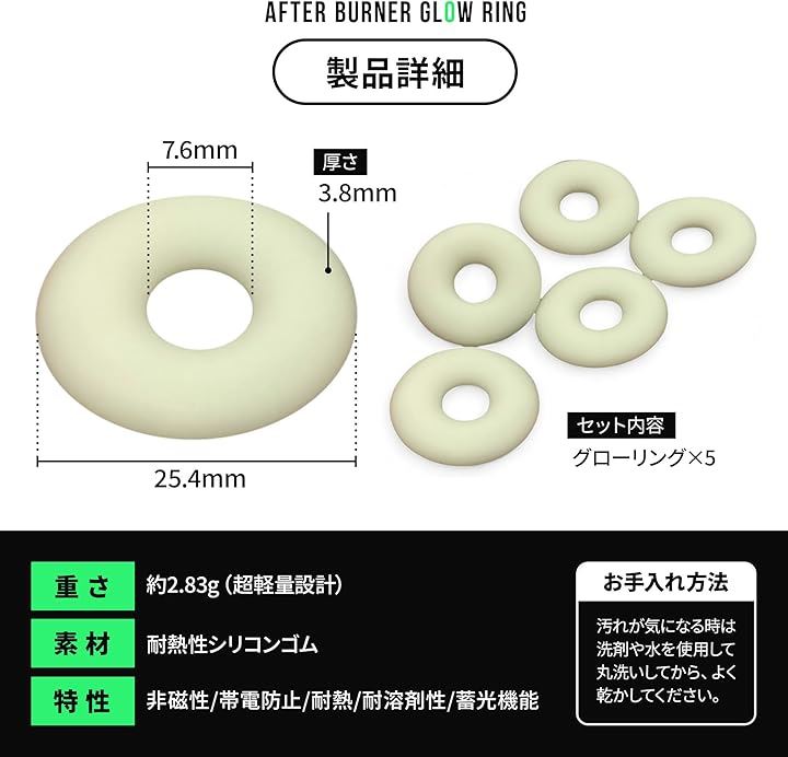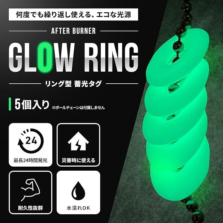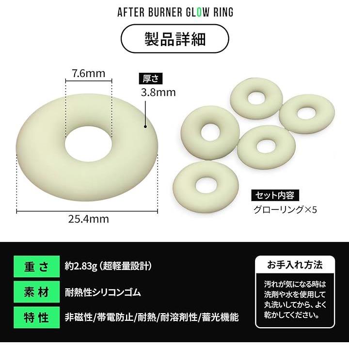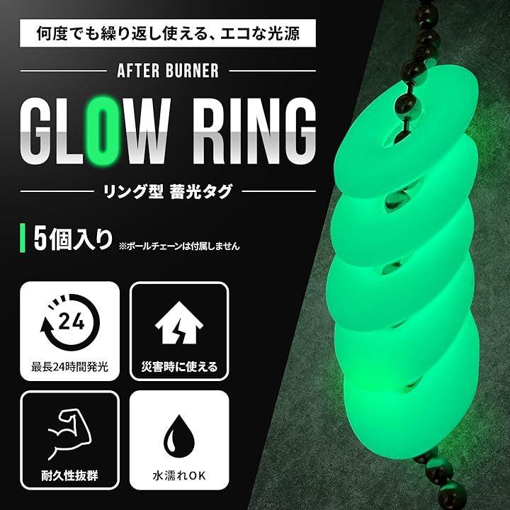 アフターバーナー グローリング 5個セット 蓄光キーチェーン ペールグリーン Afterburner Glow Ring
