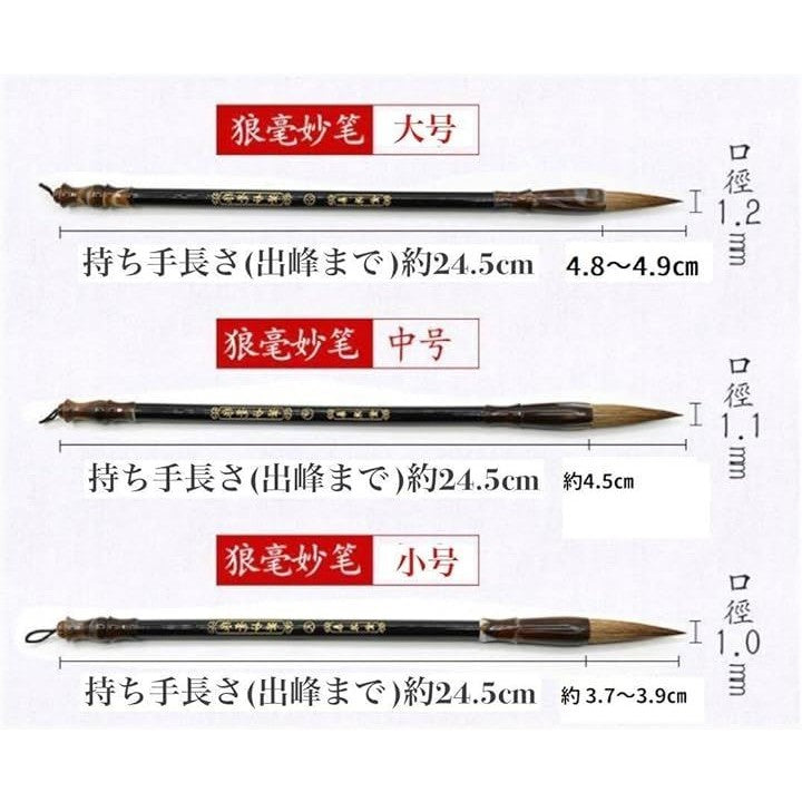 書道用筆セット 3本入り 先端尖った天然木製 細かい表現可能