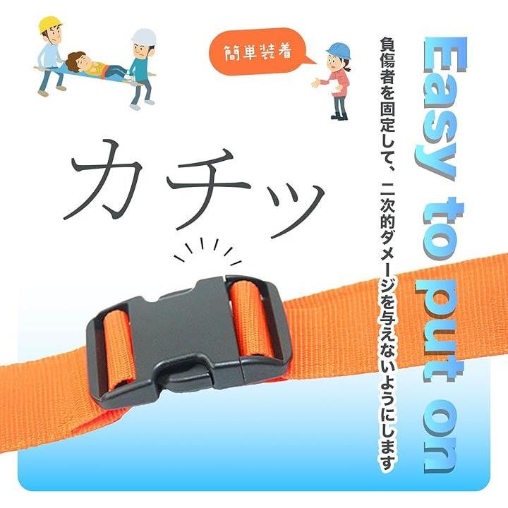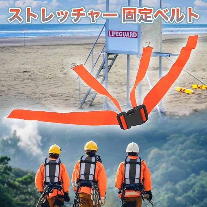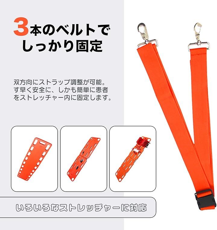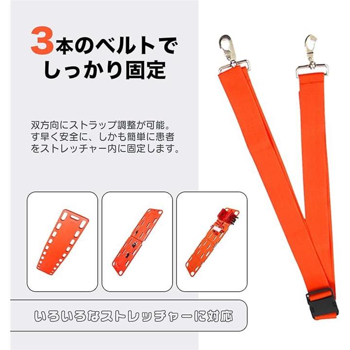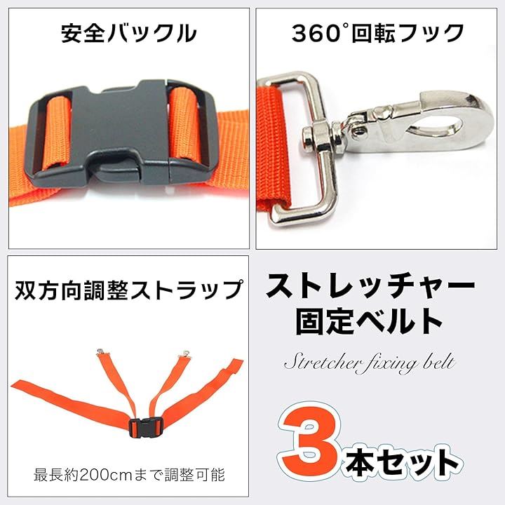 ストレッチャー 固定ベルト 360°フック トランスファーボート 担架 固定ストラップ 最長約200cmまで調整可能 3本セット