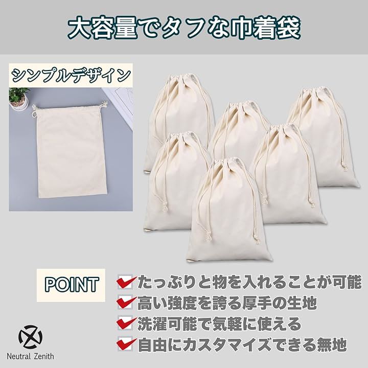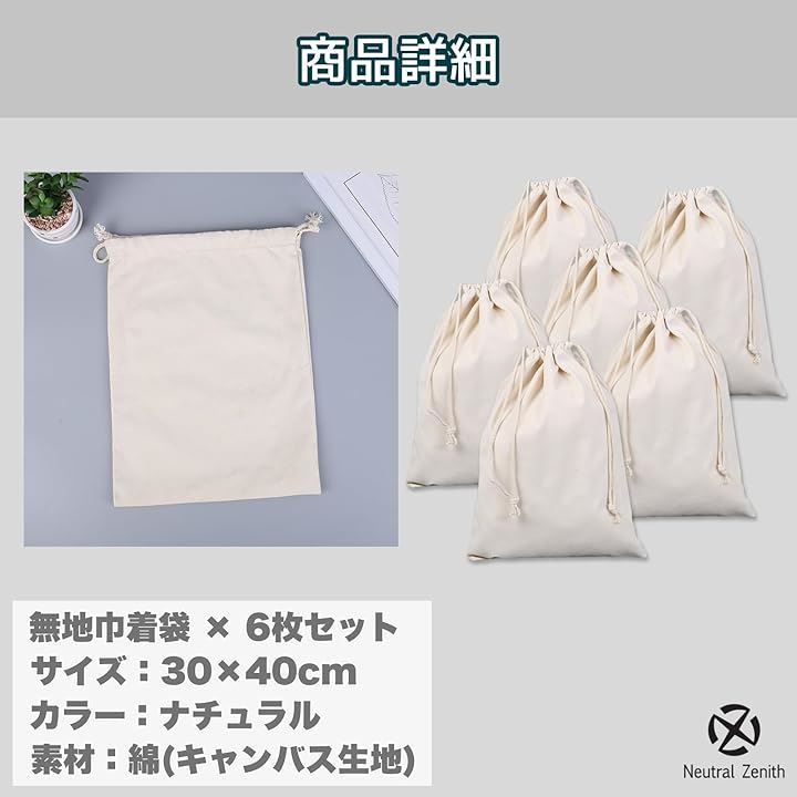 巾着袋 布 無地 綿 キャンバス生地 引きひも袋 雑貨 収納ポーチ 30x40cm