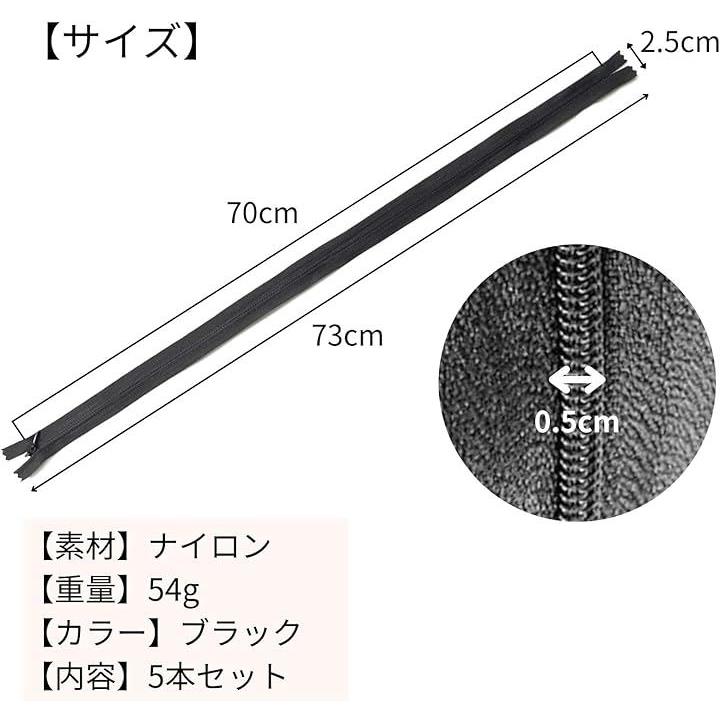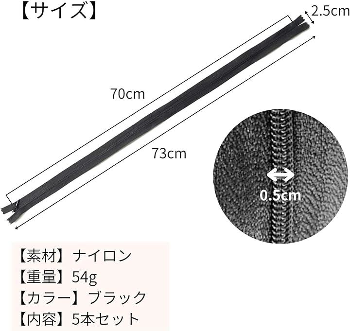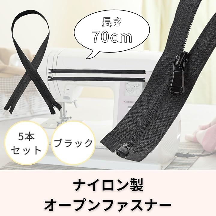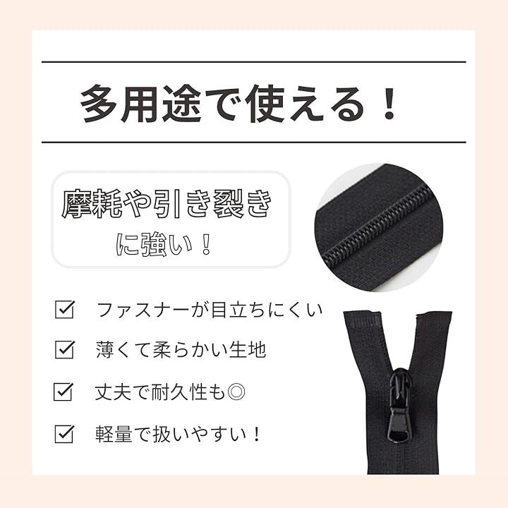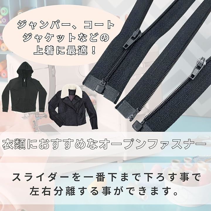 オープンファスナー 黒色 ナイロン製 チャック ジッパー DIY ハンドメイド 洋裁 修理 交換