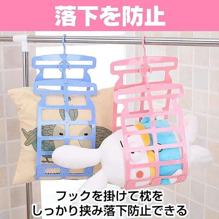 枕ハンガー 2個セット 枕干し まくら用 ぬいぐるみ 洗濯 物干しラック 洗濯物干し サイズ調節 360度回転