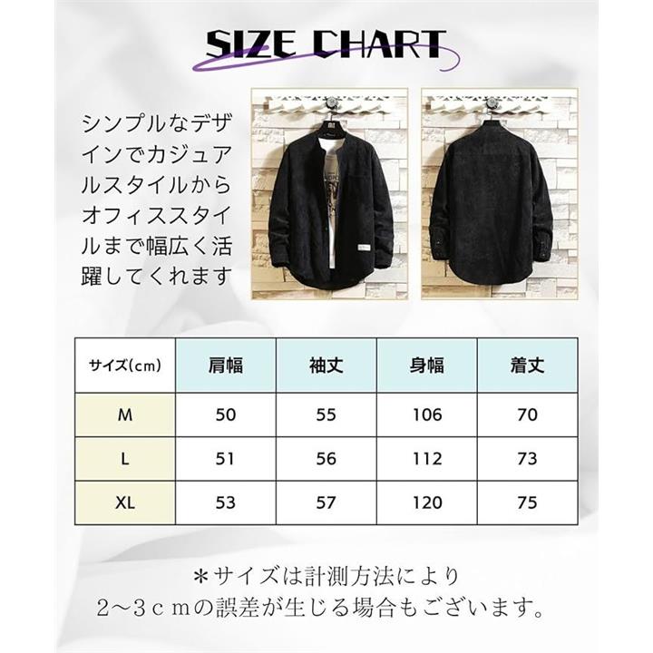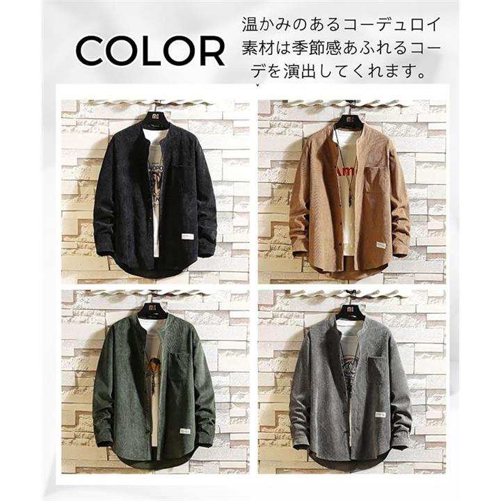 トレンドx定番 コーデュロイ スタンドカラーシャツ メンズ バンドカラーシャツ コーデュロイシャツ 羽織 トップス 長袖 秋 秋冬 カジュアル