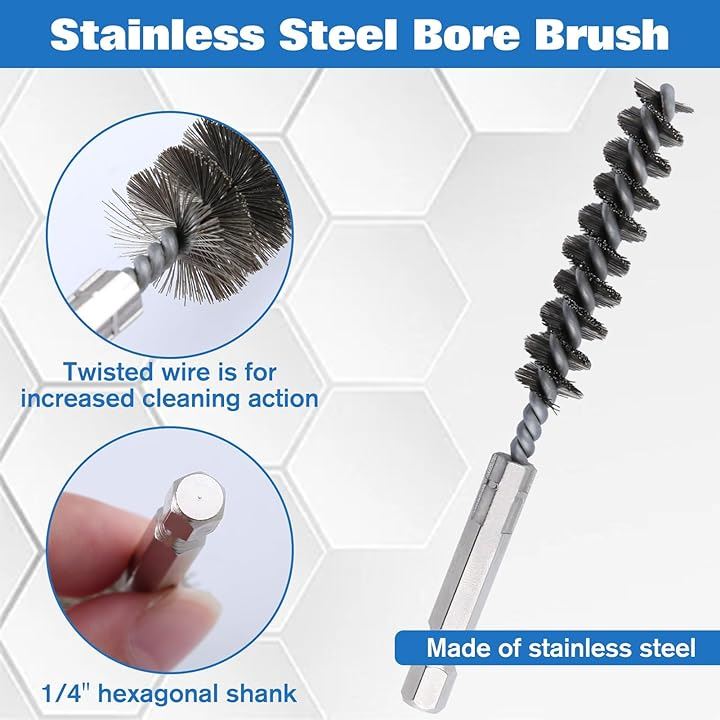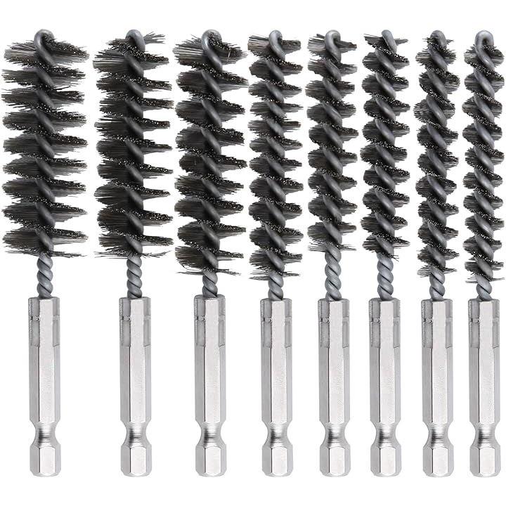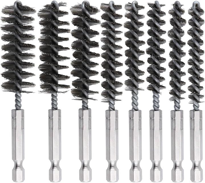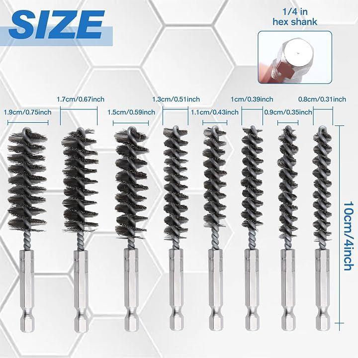 ワイヤーブラシ 六角軸6.35mm 8本セット ステンレス鋼ボアブラシ 直径8 9 10 11 13 15 17 19mm パイプブラシ パワードリル用ブラシ 研磨ブラシ 電気バリブラシ