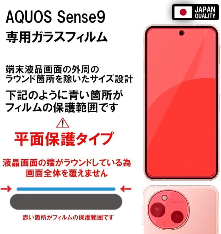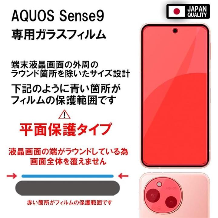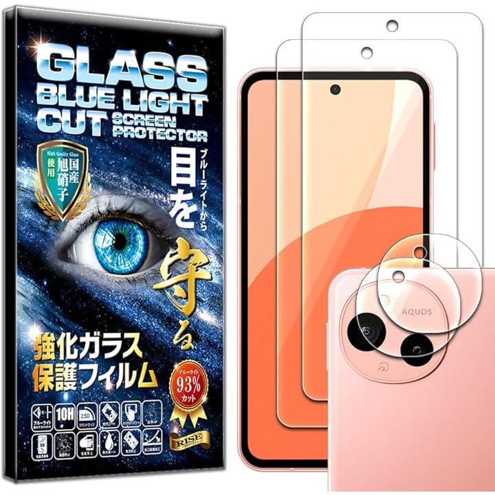RISE 2枚+2枚 フィルム AQUOS sense9 ガラスフィルム SH-53E SHG14 SH-M29 用 ブルーライトカット カメラフィルム レンズフィルム レンズ保護ガラス レンズカバー 保護フィルム 強化 高透過 高光沢 日本製 旭硝子 0.26mm 硬度10H