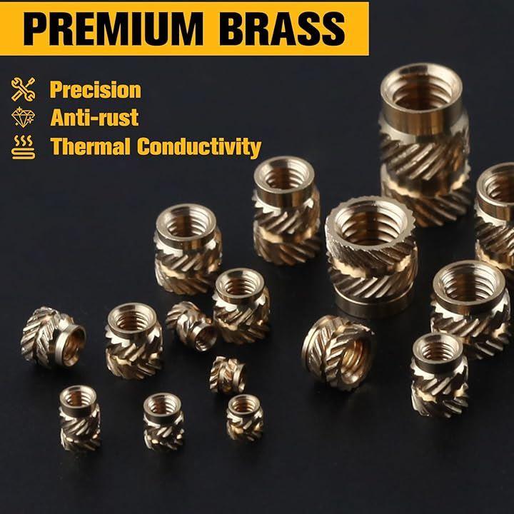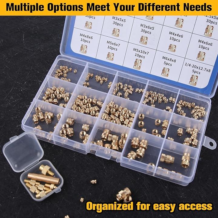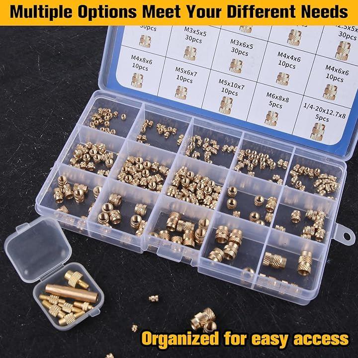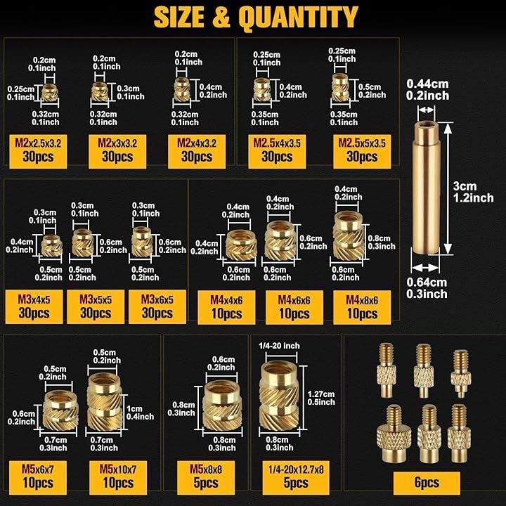 互換品 インサートナット セット 307個セット M2 M2.5 M3 M4 M5 M6 1/4-20 埋め込みナット ねじ切りインサートアソートキット プラスチックセット用ネジ切りインサート 真鍮ナットインサート 収納ボックス付き