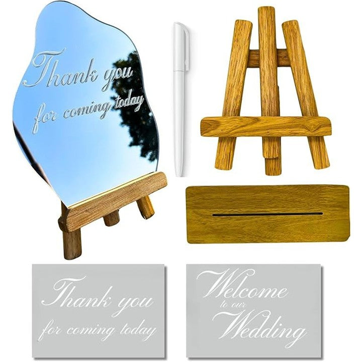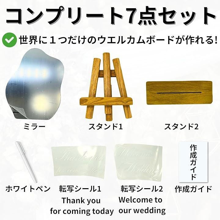 ウェルカムボード 結婚式 ウェルカムスペース ウェーブミラー シール2種類 スタンド2種類 ホワイトペン付属 フルセット TR1216