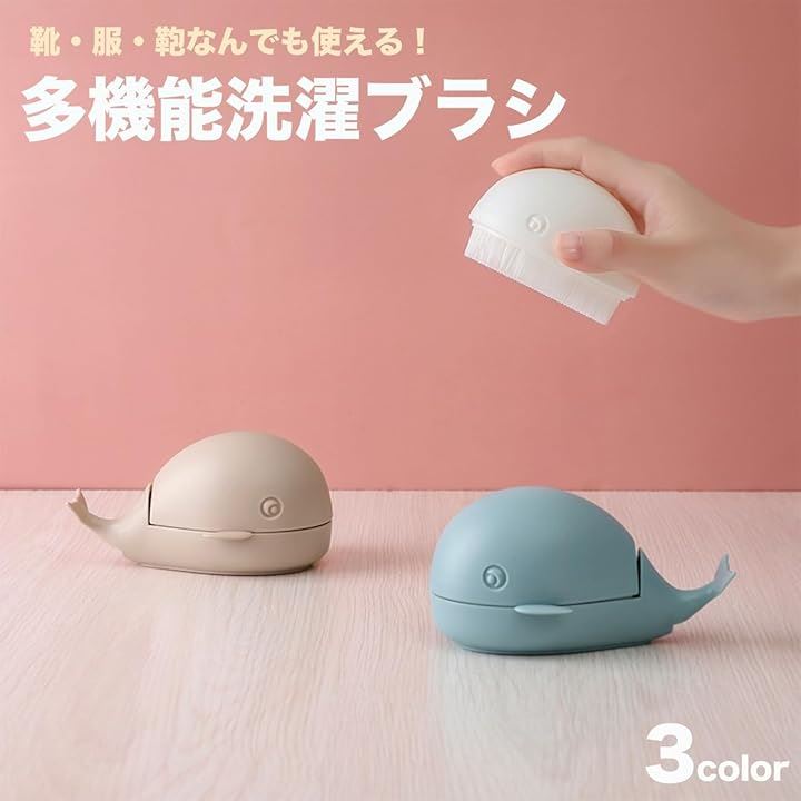 洗濯ブラシ 多機能 クジラ 靴 服 鞄 かばん 手洗い ハンディ 襟洗い 袖洗い コンパクト 汚れ インテリア おしゃれ かわいい 鯨 簡単 家庭 旅行 出張