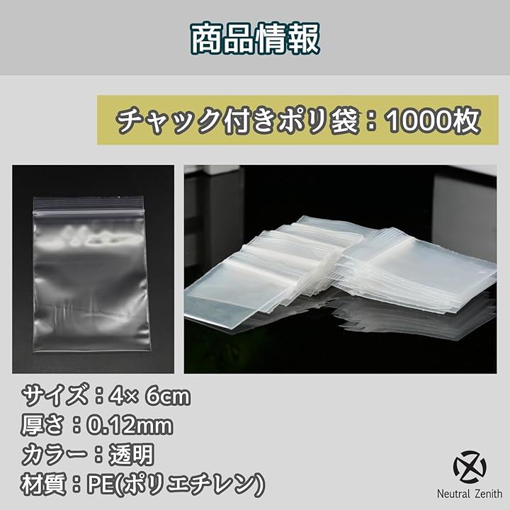 小分け袋 チャック付き ポリ袋 ミニ 厚手 透明 プラスチック 4x6cm 1000枚