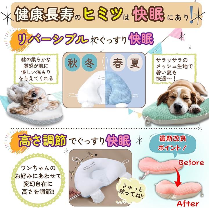 K-Bom 犬 あごのせ枕 ペットクッション 抱き枕 首のせ リバーシブル 2way 高さ調節 通気性 リラックス 体位維持 メッシュ生地 高素材 春夏快適 丸洗い可能 介護 ストレス軽減 |