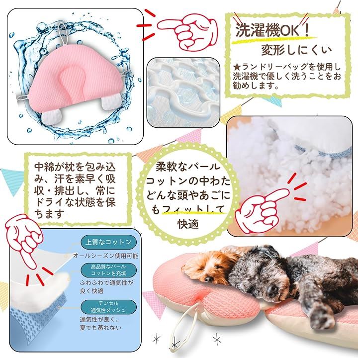 この枕はペットの頭と首を優しく支え、長時間の休息でも快適さを保つことができます。