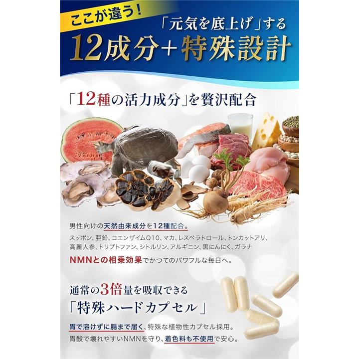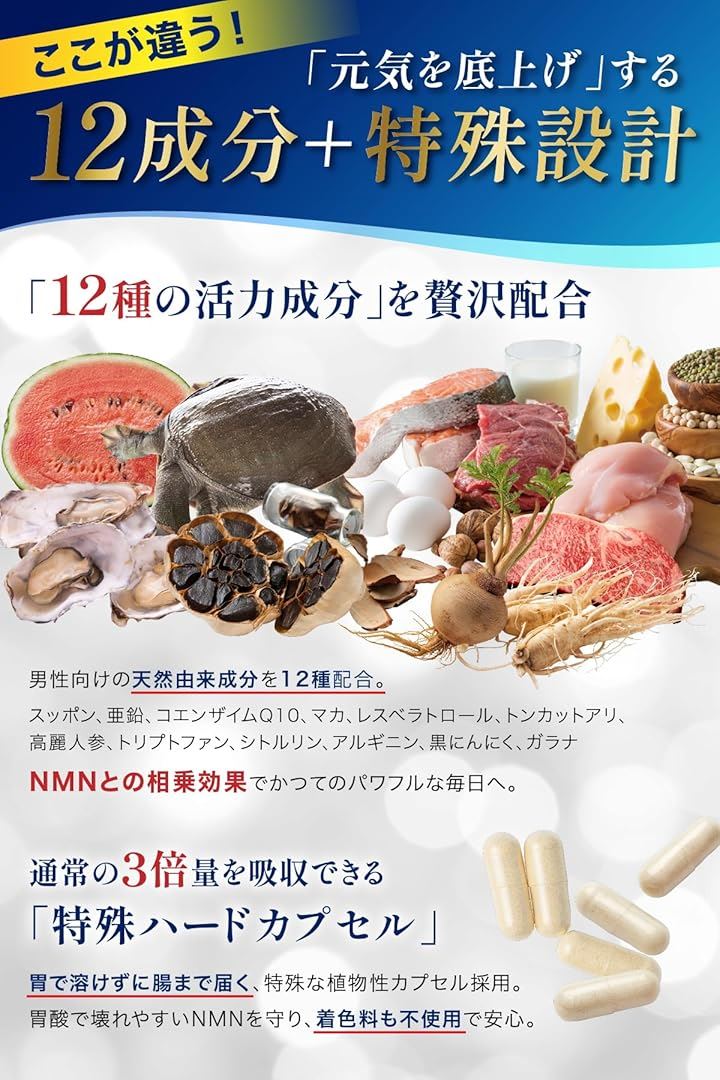 NMN サプリメント 15000mg 国内産 β-NMN 高年 男性用 高純度100% マカ 亜鉛 すっぽん 耐酸性カプセル |