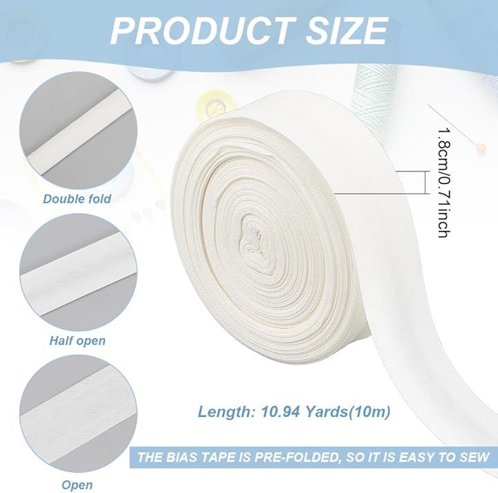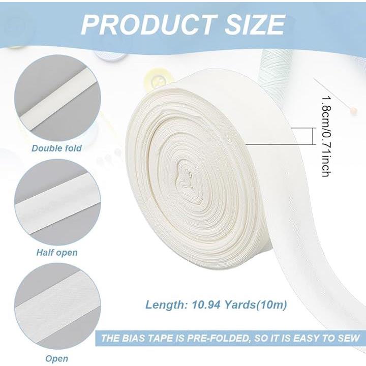 10m/巻 幅広両折バイアステープ 幅18mm パイピングリボン ふちどり コットンツイルテープ コットンリボン 縫製/縁取り/パイピングキルティング用 DIY用
