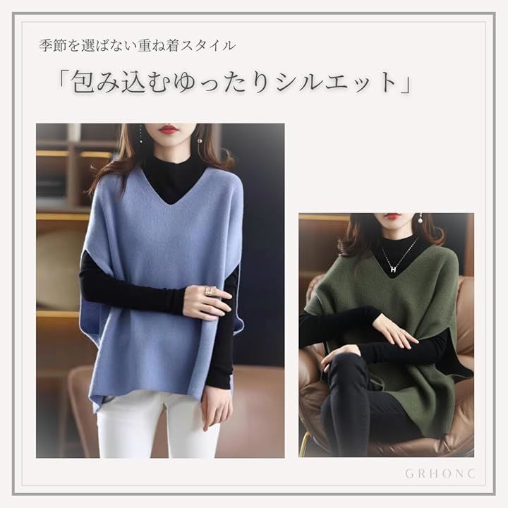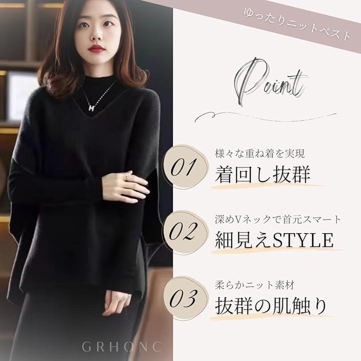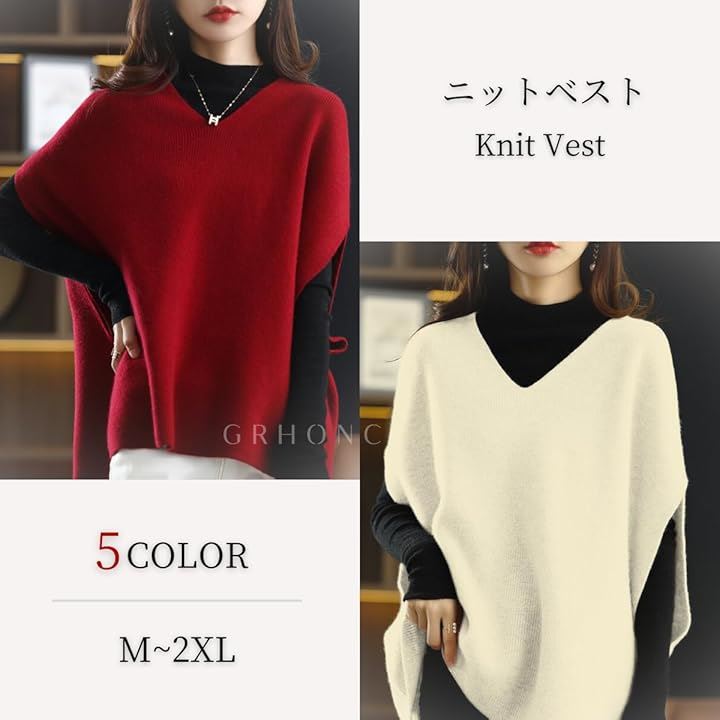 [GRHONC] ニット ベスト レディース セーター Vネック 無地 ゆったり 重ね着 着痩せ 秋 冬 春 |