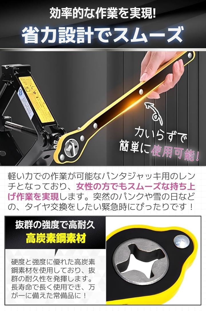 パンタジャッキ ジャッキ用レンチ 耐久性 車 省力 ジャッキアップ ラチェット