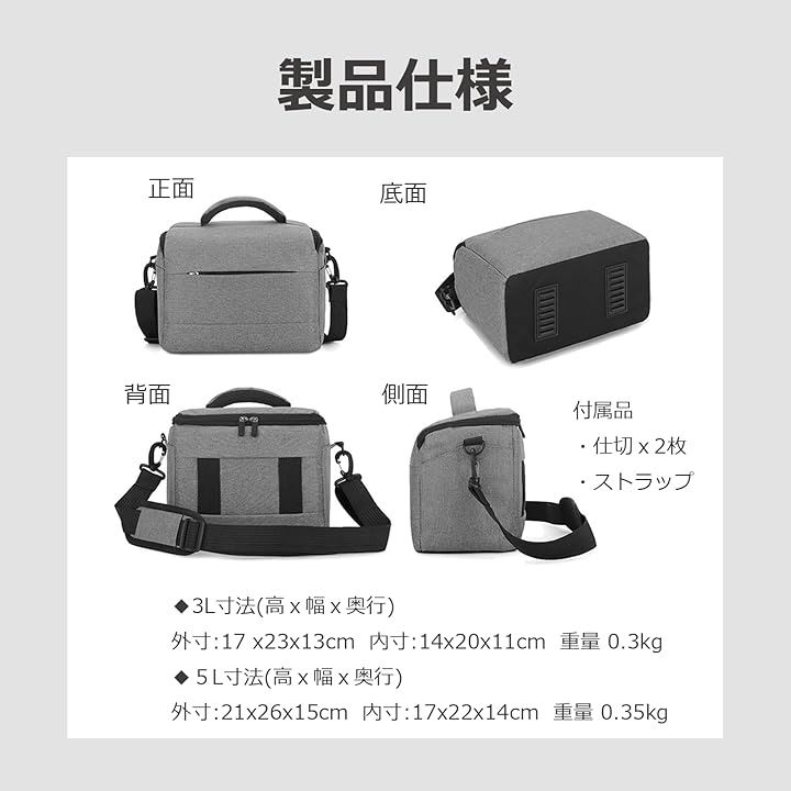 カメラ インナーケース ショルダー バッグ 兼用 カメラバッグ レンズ 収納 仕切付き 一眼レフ
