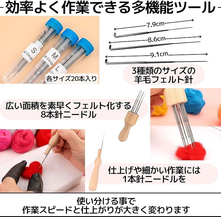 フェルトニードル フェルティングニードル 羊毛フェルト 1本針 8本針 木製 フェルトニードルホルダー 初心者 キット