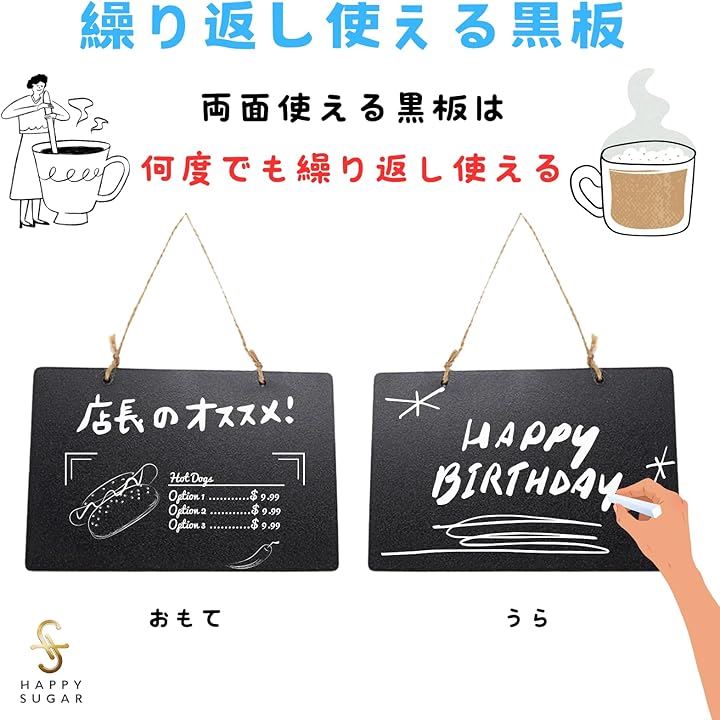 黒板ボード ブラックボード 卓上 ミニサイズ 両面使える 吊り下げ 壁掛け 看板 メニューボード 掲示板 ディスプレイ 2枚セット