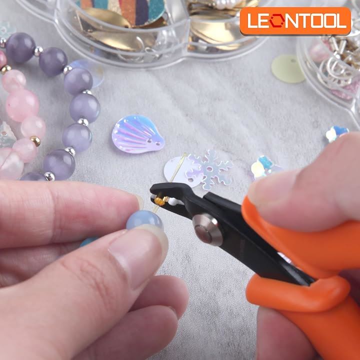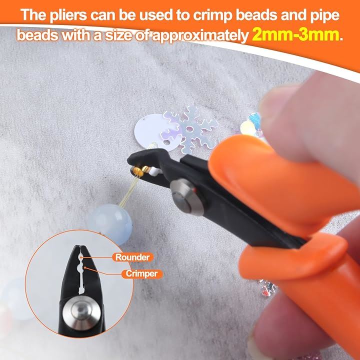 つぶし玉ペンチ ビーズ クリンピング プライヤー かしめ用圧着ペンチ バネ付 先曲 2刃穴 クリンププライヤー カシメ工具 軽量 精密圧着ペンチ ジュエリープライヤー テグス 端処理 プロ アクセサリー 手芸用品 DIY手作り ホビー ツール